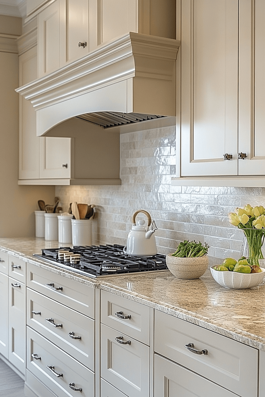 Warm linen-beige cabinetry softens kitchen cabinet color ideas by offering a timeless alternative to bright white. This shade introduces warmth while keeping the kitchen light and welcoming. Beige cabinets complement nearly every material, from stone to wood to metal. The overall look feels relaxed and enduring. It’s comfort with elegance.