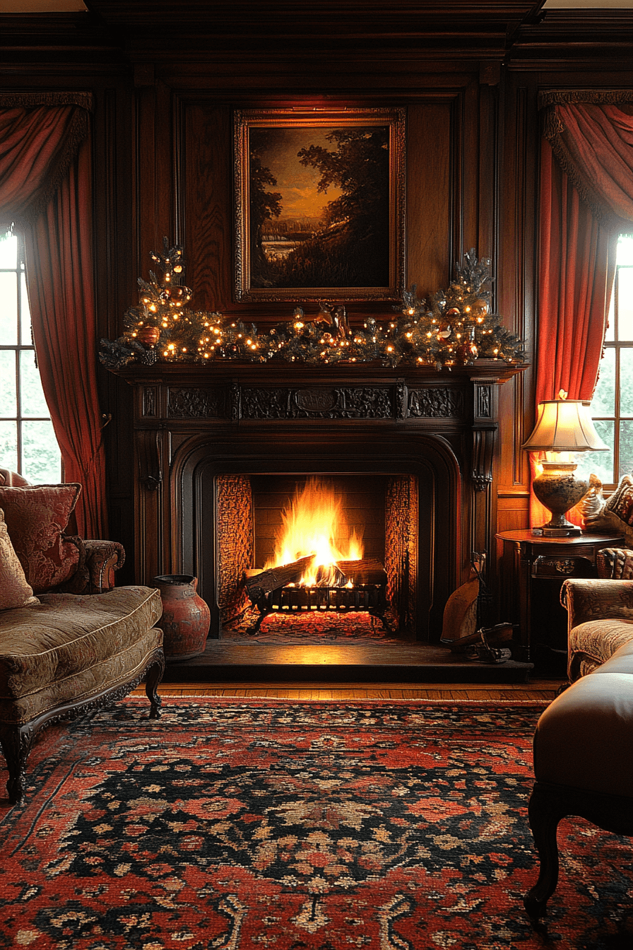 A stone fireplace surrounded by antique accents defines rustic comfort at its finest. It’s one of the most timeless antique farmhouse decor ideas for cozy gatherings. The flicker of firelight adds golden warmth to every surface. The scent of wood and smoke wraps the room in peace.