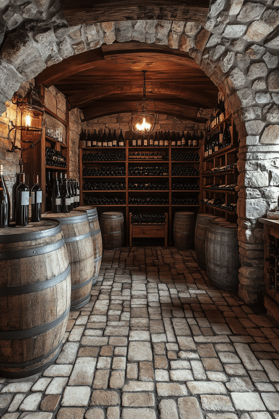 A wine cellar accented with oak barrels and vintage racks exudes understated luxury. It’s one of the most refined antique farmhouse decor ideas, marrying tradition with taste. Each bottle feels like a memory waiting to be shared. The atmosphere is warm, earthy, and sophisticated.