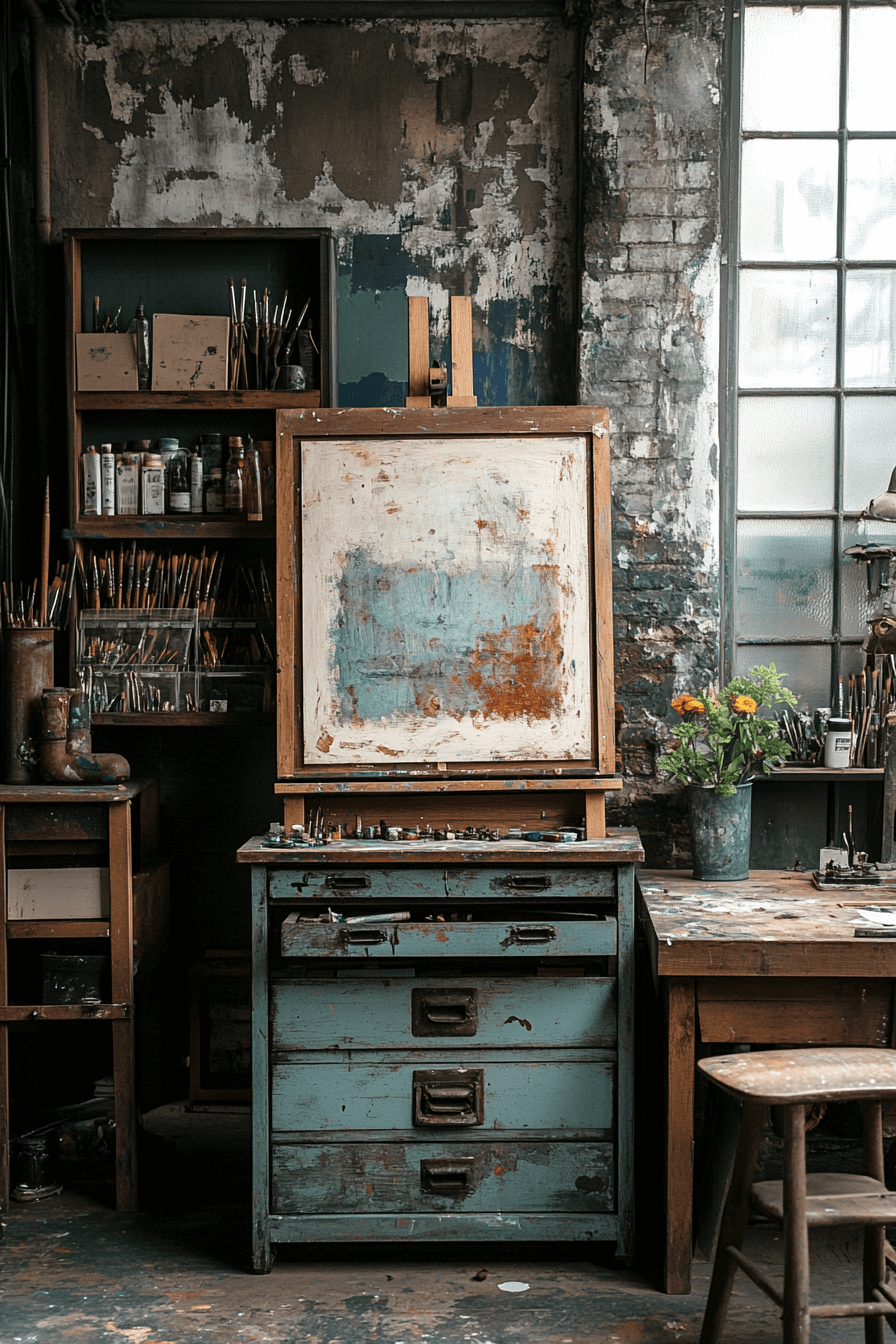 An artist’s studio filled with old easels, pottery, and rustic accents becomes pure inspiration. It’s one of the most creative antique farmhouse decor ideas that merges soul and style. The imperfections in each object spark imagination. It’s where art meets legacy.
