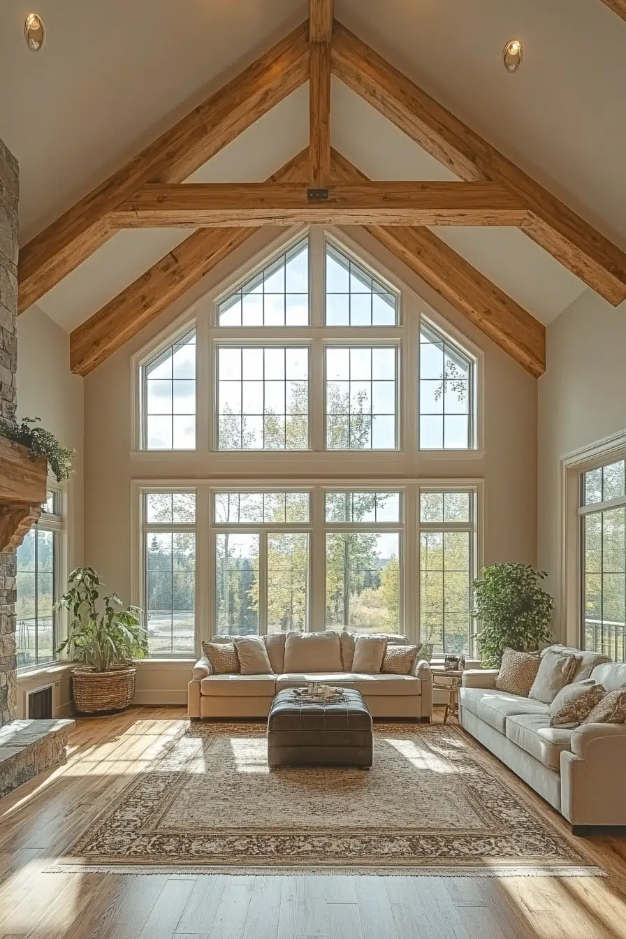 Utilize high ceilings in your barnhouse decor ideas for an effect of space and luxury. Exposed beams or grand chandeliers can accentuate this feature, drawing the eye upward. These spaces allow for bold decor choices that make a statement.