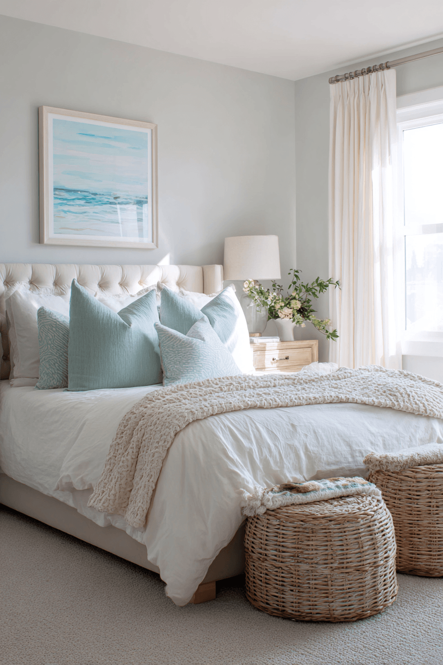 19. Layered Coastal Soft Bedroom