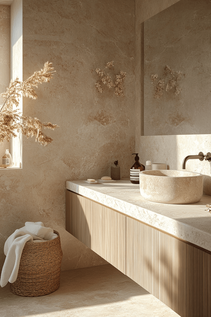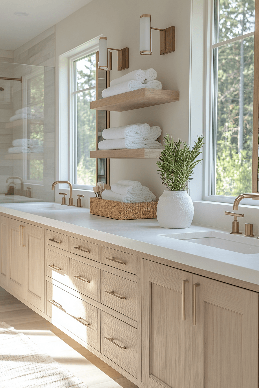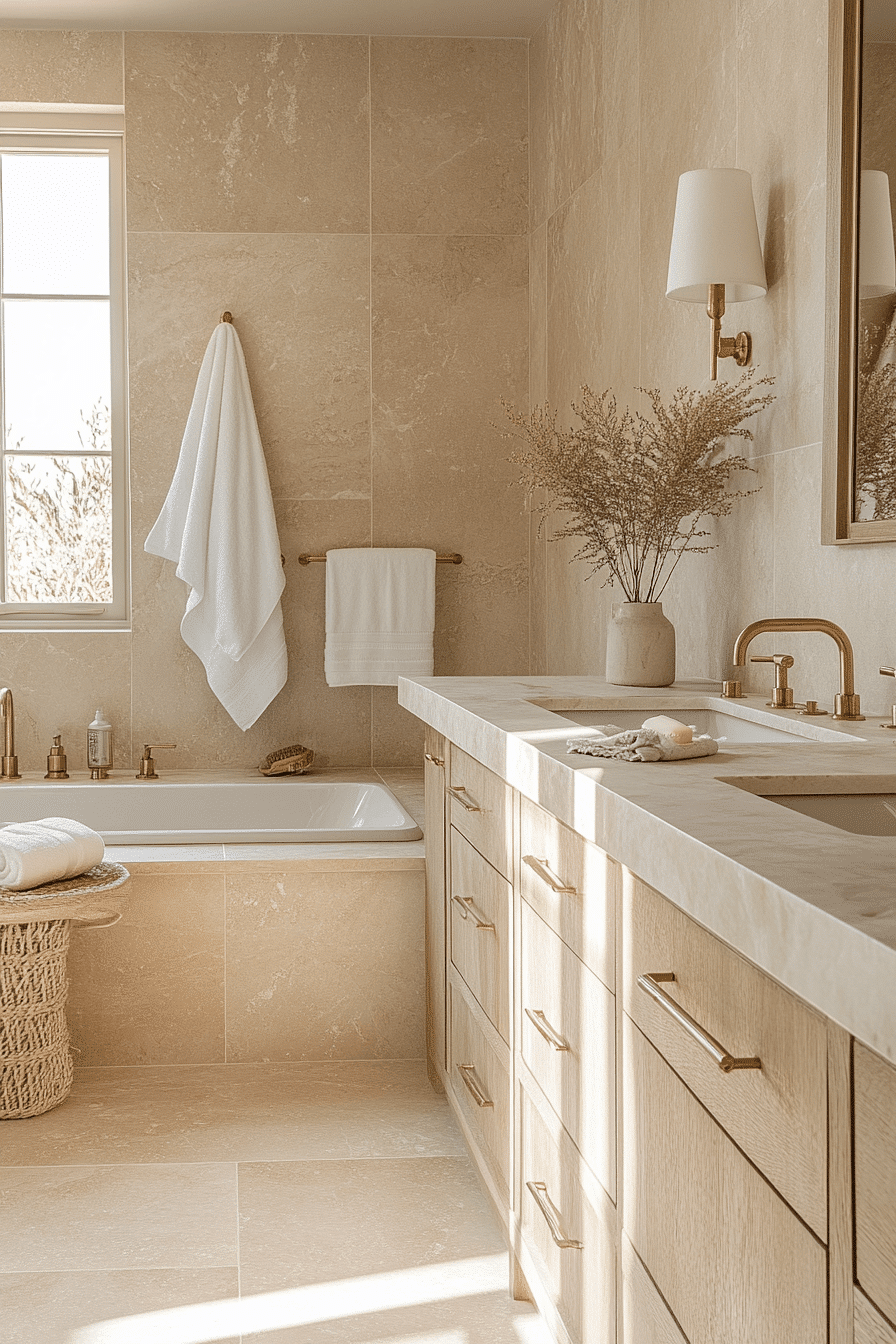 Sunlit tones create a glowing beach house bathroom that feels uplifting and warm. Soft neutrals reflect light and enhance the coastal feel. Natural materials add subtle depth. The space feels connected and cohesive. Everything works together effortlessly. Recreate this bright coastal glow and elevate your bathroom.
