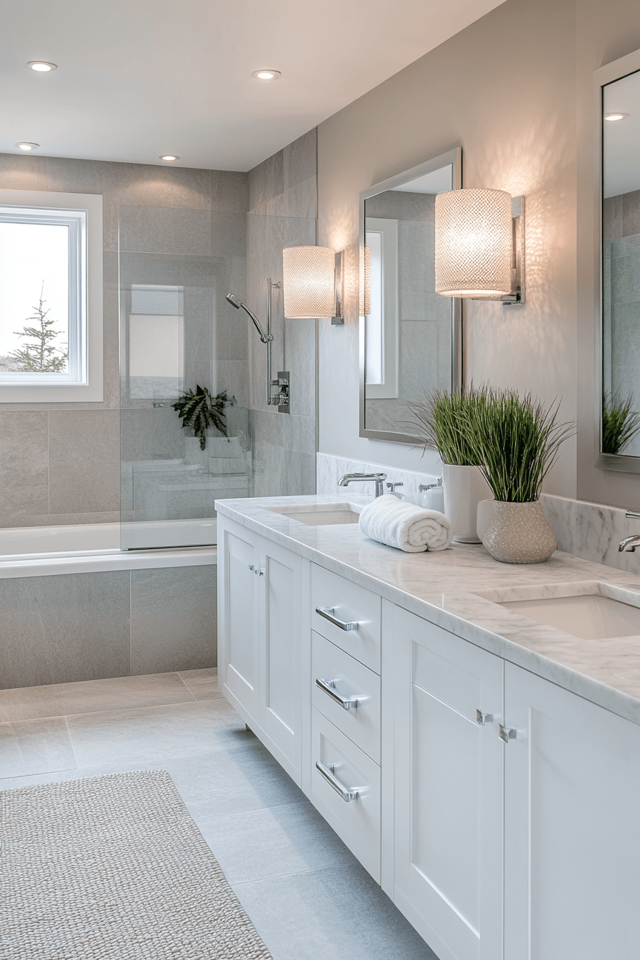 A seamless layout creates a modern and flowing beach house bathroom that feels open and connected. Continuous surfaces enhance the spacious feel. Soft tones maintain a light atmosphere. The design remains clean and current. Functionality blends perfectly with style. Try this open approach and refresh your bathroom layout.