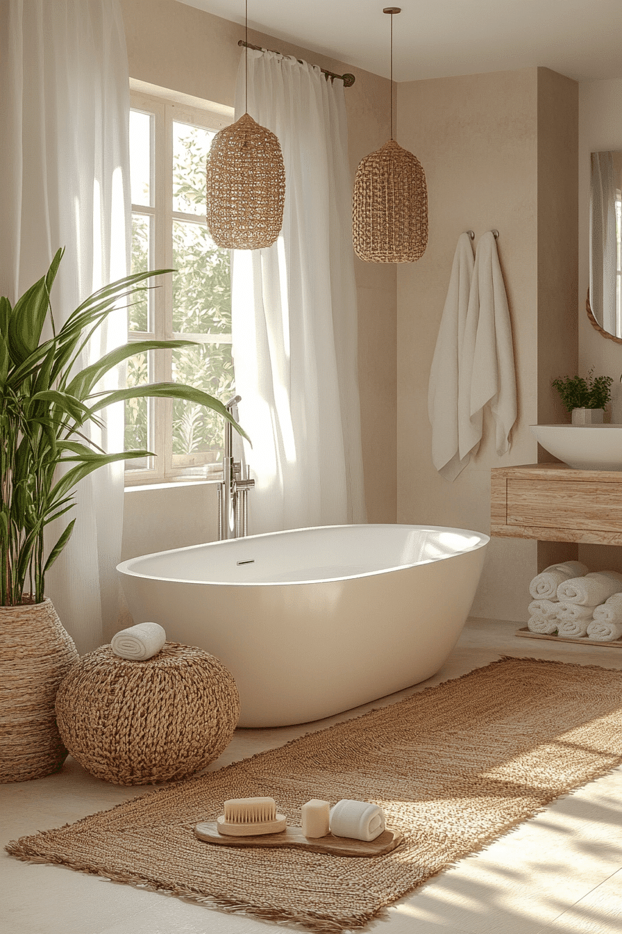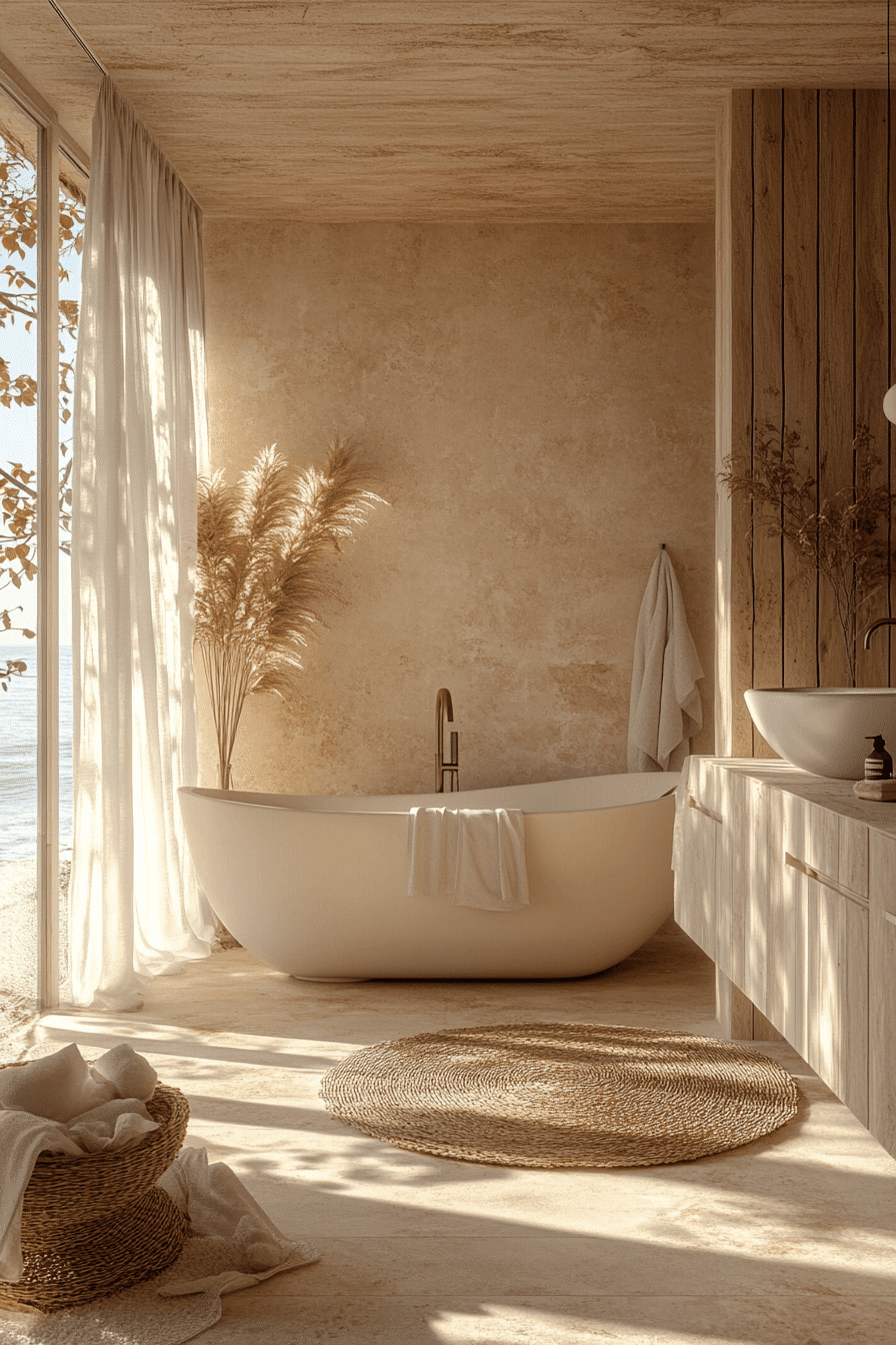 Soft coastal light and creamy tones shape a beach house bathroom that feels instantly soothing and elevated. Pale woods, airy finishes, and plush details recreate that relaxed seaside luxury with ease. The brightness keeps the room feeling open while warm textures prevent it from feeling flat. Subtle organic accents add depth without clutter. Everything feels calm, fresh, and effortlessly styled. Refresh your space with this light-filled coastal escape today.