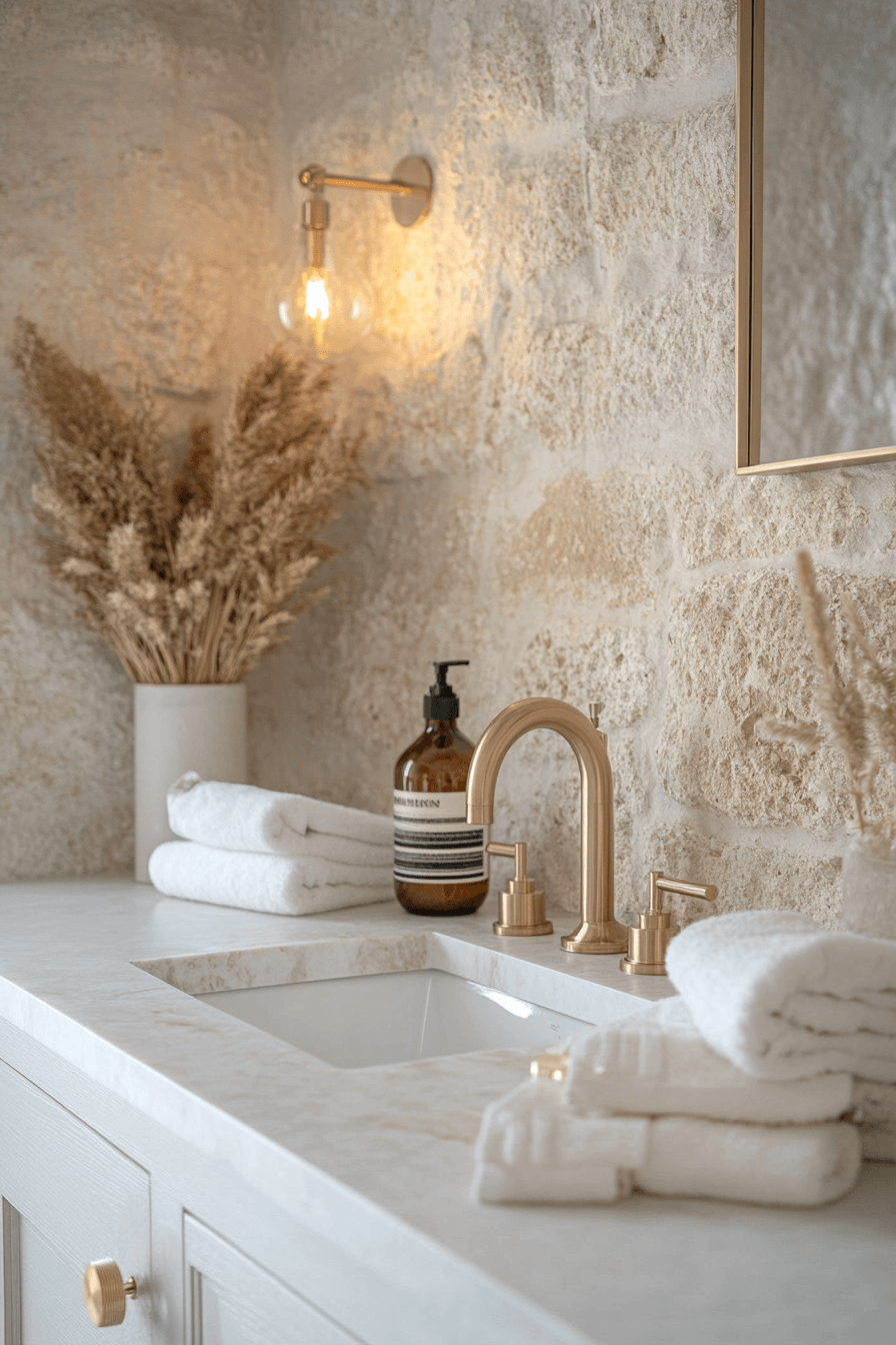 Stone textures add richness and depth to this refined beach house bathroom, creating a spa-like atmosphere. Organic finishes bring warmth while clean lines keep things modern. The balance feels both luxurious and relaxed. The design remains timeless and inviting. The space feels grounded and calm. Add stone elements and transform your bathroom beautifully.