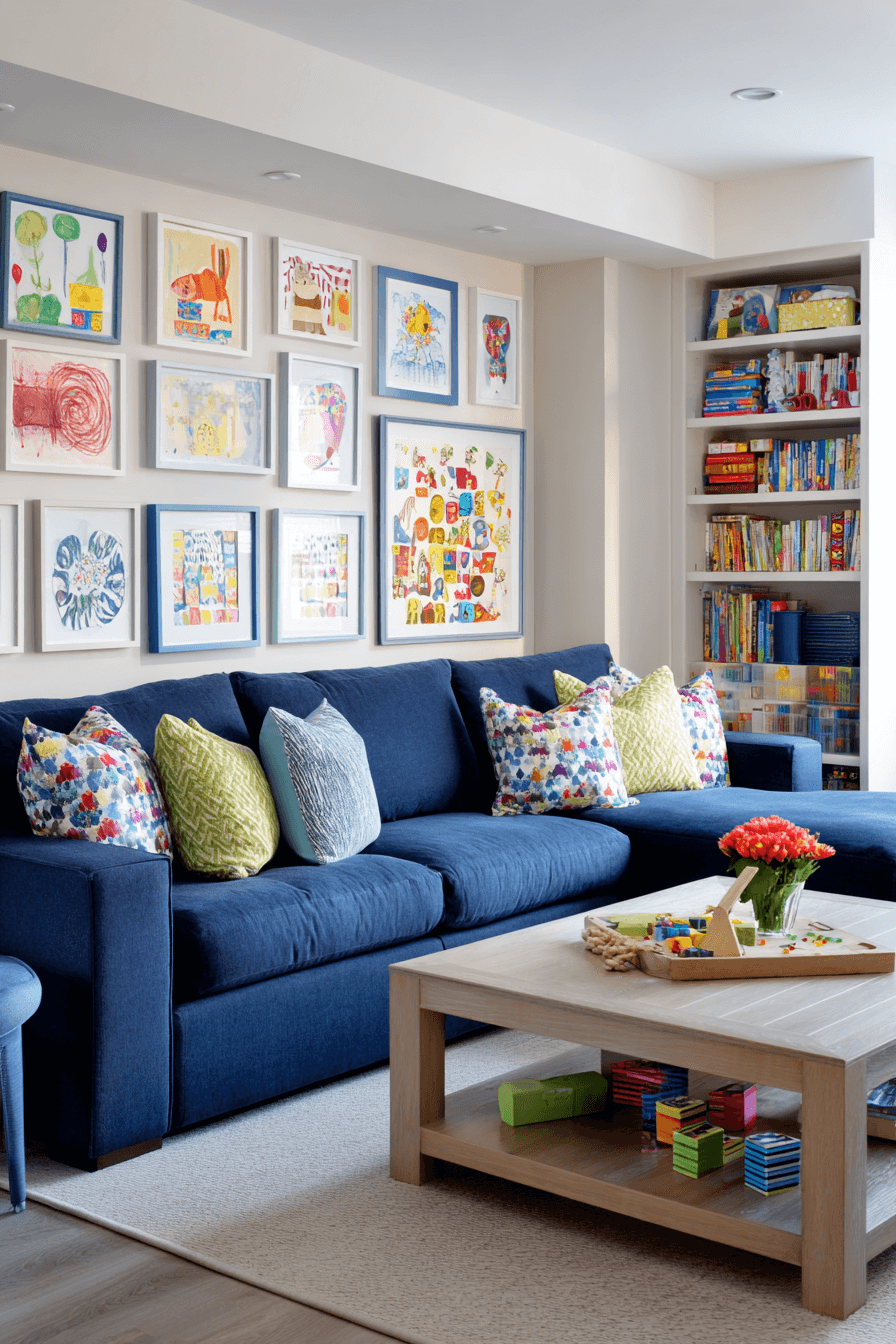 Durability meets design in a blue couch living room built for everyday living. A sturdy sofa handles daily use while still looking stylish. Functional pieces keep the space organized and practical. Pops of color add personality without chaos. The layout feels balanced and welcoming. Design your blue couch living room for real life and enjoy it fully.