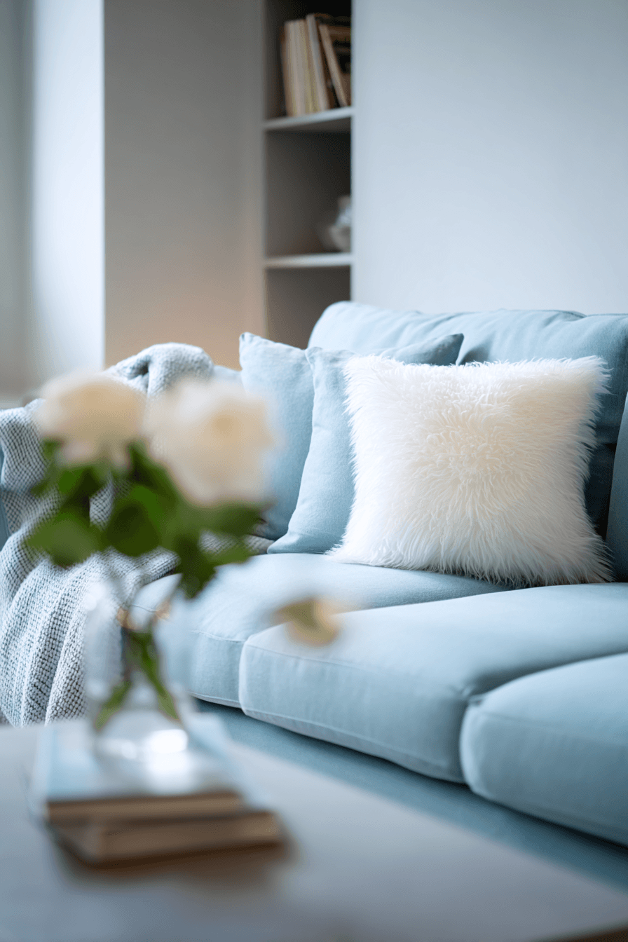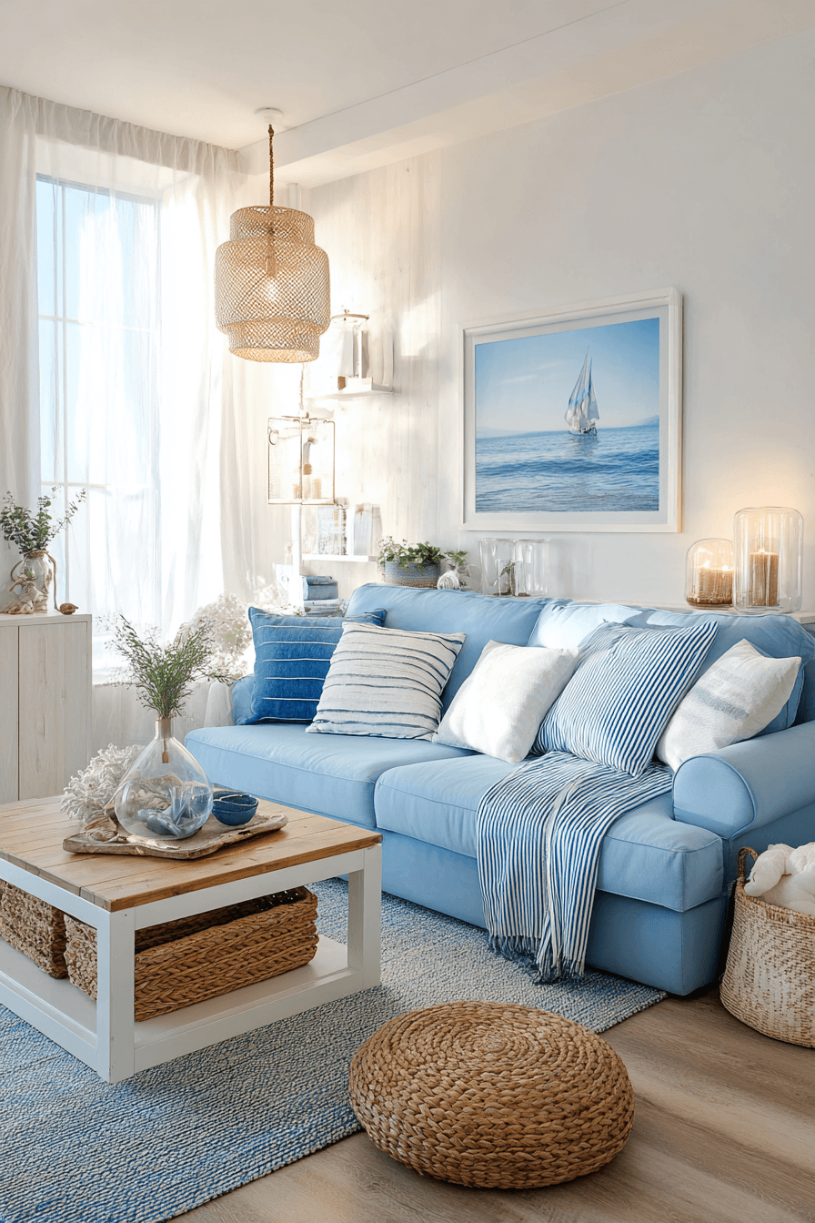 Soft ocean tones create a calming blue couch living room that feels like a daily escape. The soothing palette reflects the tranquility of water and sky. Natural textures add warmth and keep the space grounded. Light enhances every subtle shade beautifully. The atmosphere feels peaceful and refreshing. Bring this coastal calm into your blue couch living room today.