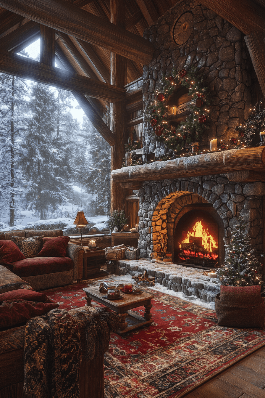 A warm winter lodge vibe makes cabin interiors feel like the ultimate cozy escape during colder months. Deep wood tones and plush textiles instantly create a snug and inviting atmosphere. Soft ambient lighting enhances the warmth and adds a relaxing glow throughout the space. Classic features like exposed beams and stone accents bring timeless charm. Every detail is layered to feel comforting without being overwhelming. Bring this cozy winter energy into your cabin interiors and enjoy every moment.