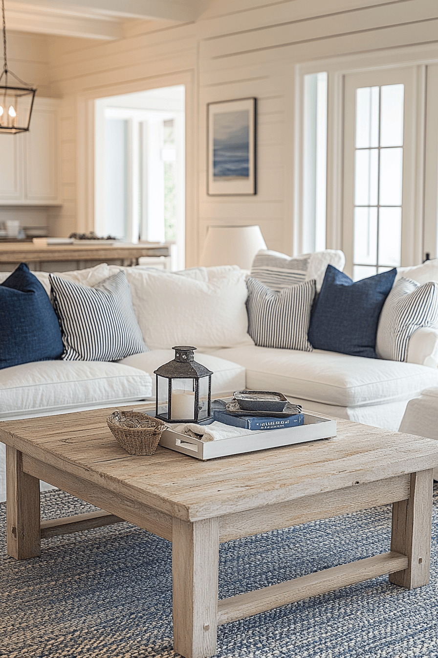 Oceanic shades inspire colorful living room ideas with calming blues that feel fresh and breezy. Soft neutrals enhance the airy effect. Subtle details complete the coastal look. The space feels open and peaceful. The design flows naturally. Bring ocean-inspired calm into your home.