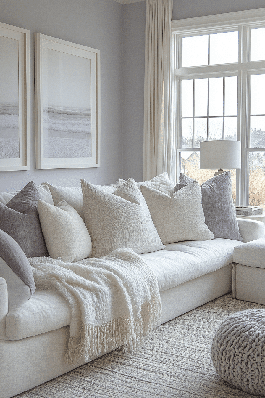 Soft lavender tones calm colorful living room ideas into dreamy, relaxing environments filled with subtle elegance. Gentle purples pair beautifully with neutral shades. Soft textures enhance comfort. The space feels peaceful and inviting. Color adds quiet charm. Create a lavender-inspired sanctuary.