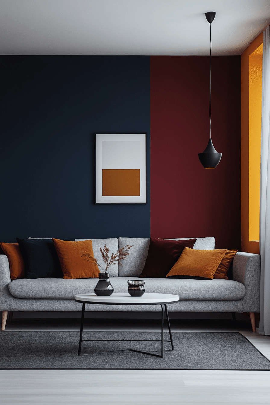 Structured color placement defines colorful living room ideas through bold sections that feel organized and modern. Distinct areas create balance and depth. Neutral pieces soften the design. The room feels dynamic yet cohesive. Strong color placement enhances visual interest. Elevate your layout with intentional color design.