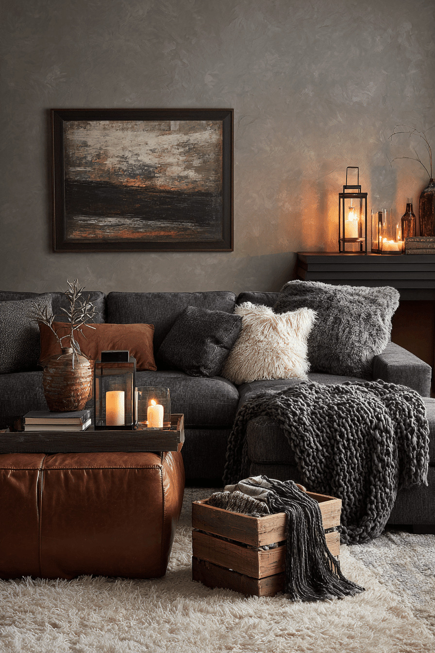 Layered textures add depth to a dark grey sofa living room while keeping the look cohesive. Soft fabrics and woven materials bring warmth. The neutral palette lets textures stand out. The space feels inviting and refined. Every detail enhances comfort. Elevate your room with texture.