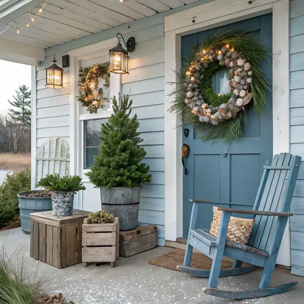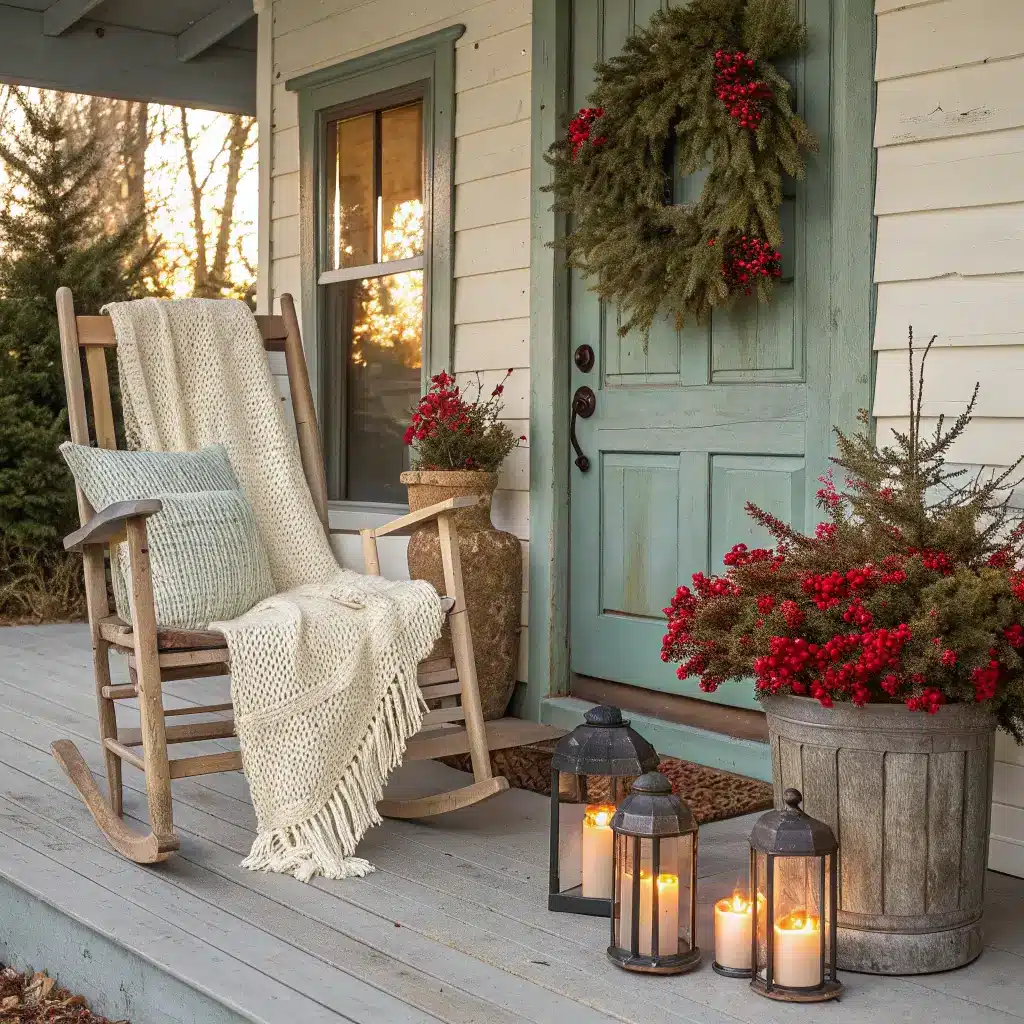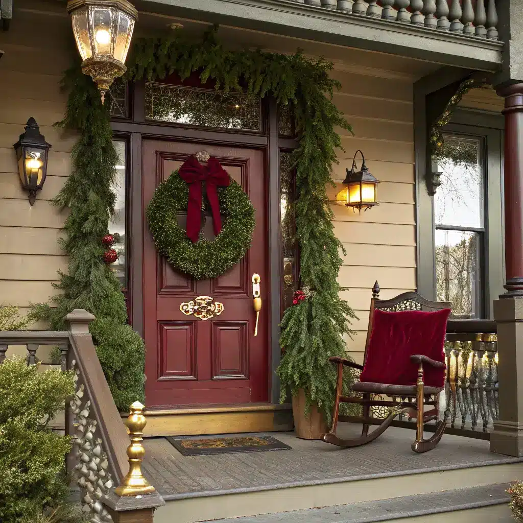I’ve found front porch Christmas decor thrives on traditional covered porches, stoops, and verandas where I have at least a small landing for planters, lanterns, or even a chair.