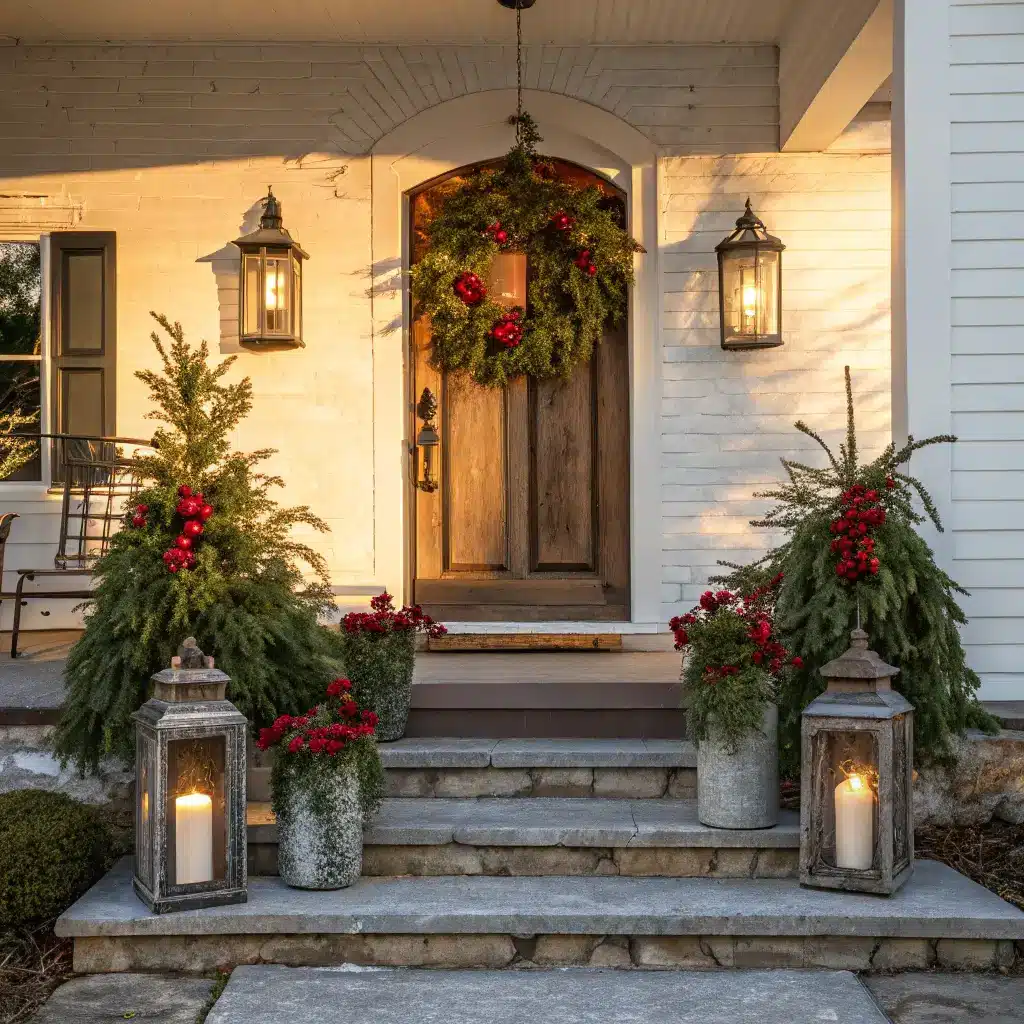 I’ve found front porch Christmas decor thrives on traditional covered porches, stoops, and verandas where I have at least a small landing for planters, lanterns, or even a chair.