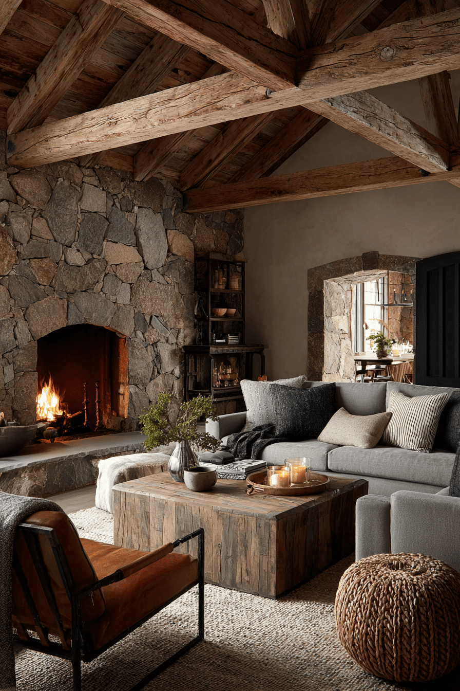 Textured layers enhance grey sofa living room ideas with subtle movement and depth. Rugs and fabrics add dimension. A grey sofa grounds the design. The space feels cohesive and stylish. It’s perfect for adding detail. Add visual depth to your living room.