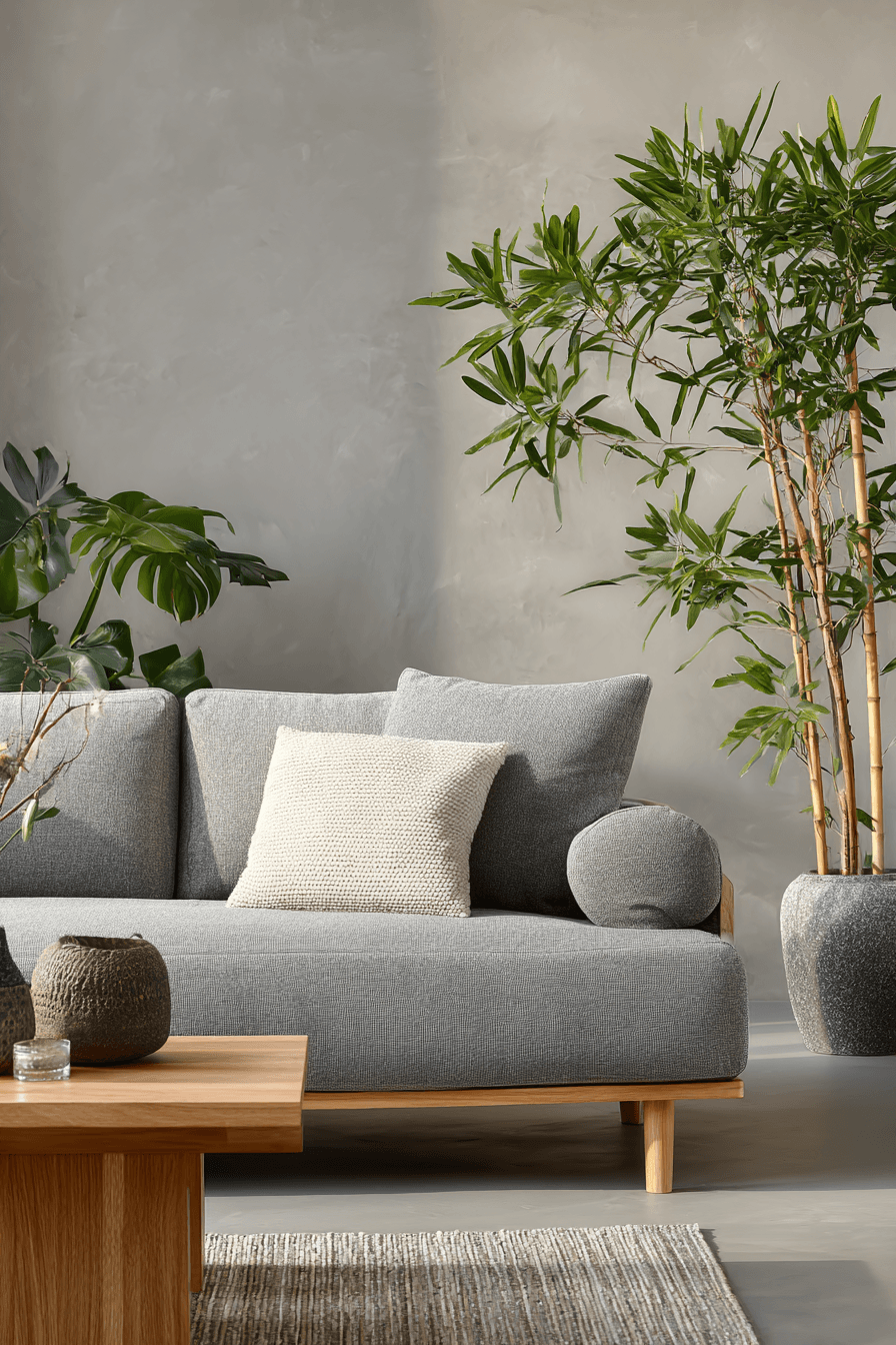 Zen-inspired balance brings harmony to grey sofa living room ideas with natural simplicity. Neutral tones and minimal decor create a calm atmosphere. A grey sofa fits seamlessly into the design. The space feels grounded and peaceful. It’s perfect for relaxation. Create a peaceful sanctuary at home.