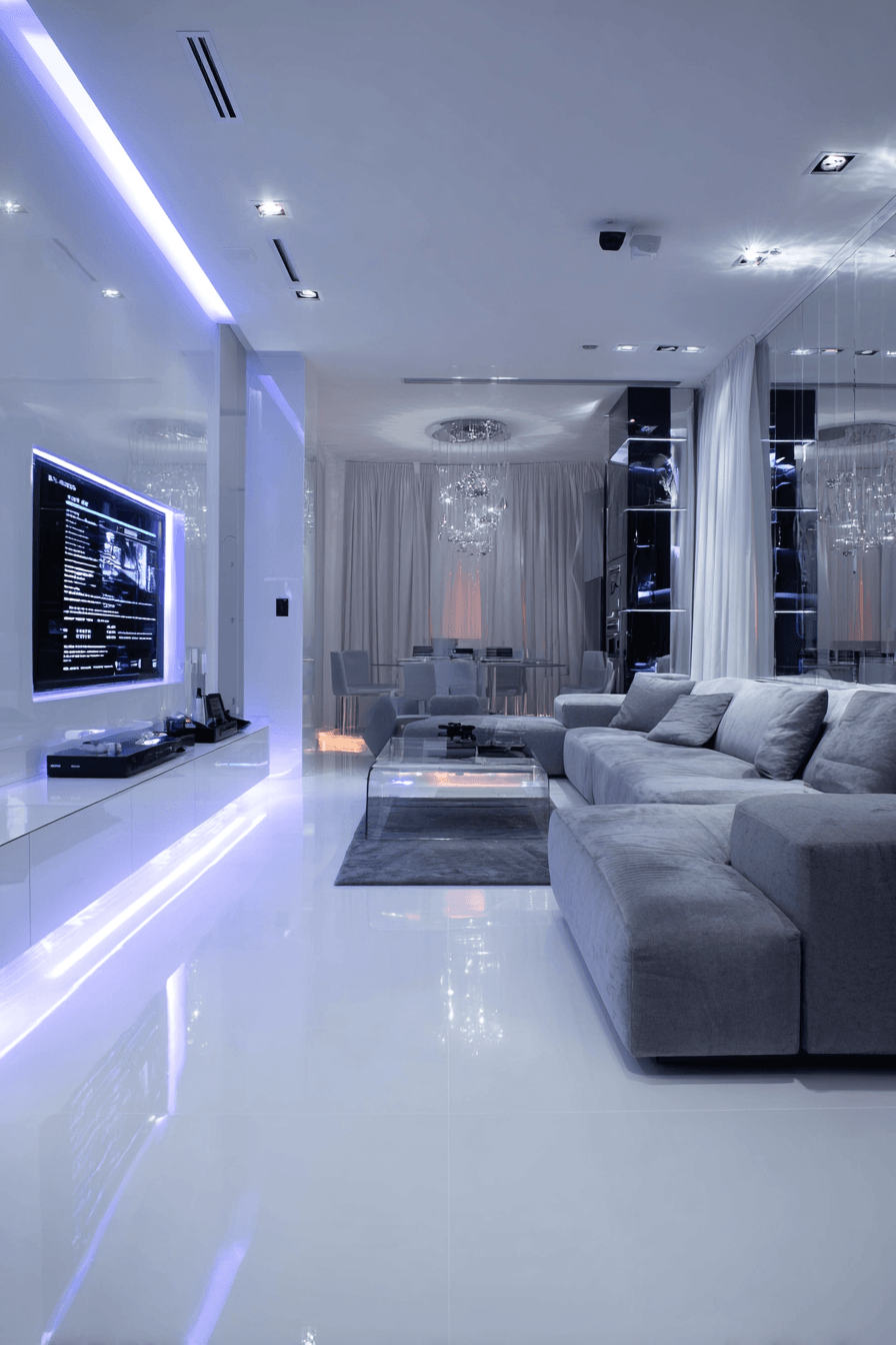 Integrated technology enhances grey sofa living room ideas with modern convenience and style. A grey sofa anchors the layout while smart features stay seamlessly hidden. Clean lines maintain a sleek aesthetic. The space feels organized and efficient. It’s ideal for a modern lifestyle. Upgrade your setup with this smart design approach.