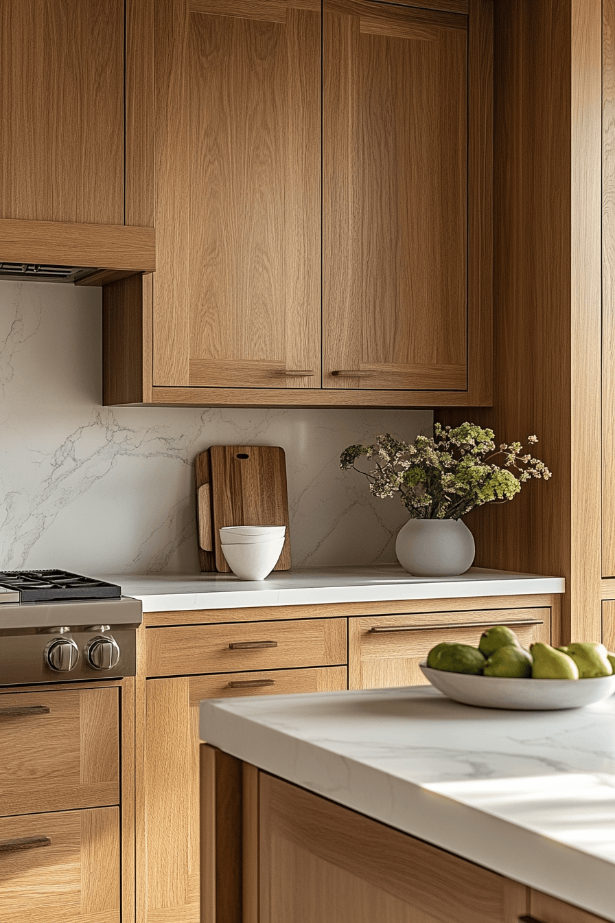 Seamless flat designs give hickory kitchen cabinets a sleek and contemporary edge. The uninterrupted grain becomes the focal point. Hickory kitchen cabinets feel modern yet warm. Clean lines keep everything minimal. The result feels fresh and inviting. Update your kitchen with this modern approach.
