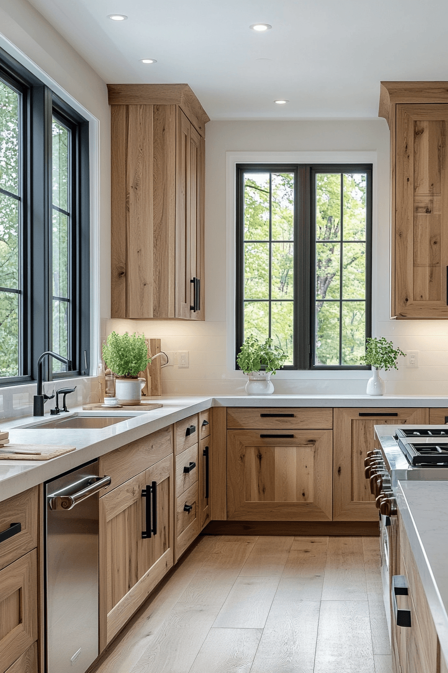Modern rustic blends bring together sleek finishes and hickory kitchen cabinets for a balanced aesthetic. Clean lines keep things contemporary. Hickory kitchen cabinets add warmth and depth. The contrast feels natural and cohesive. The space feels inviting and stylish. Blend modern and rustic elements seamlessly.