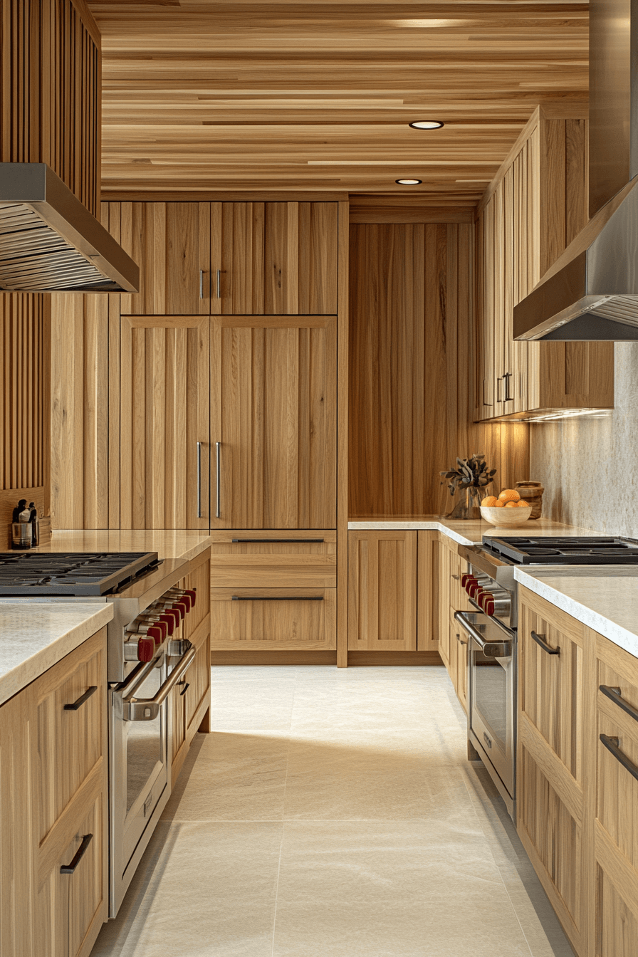 Vertical detailing adds height and structure to hickory kitchen cabinets. The upward lines create a sense of openness. Hickory kitchen cabinets showcase their grain beautifully. The design feels elegant and balanced. The space feels more expansive. Add height with vertical panel styling.