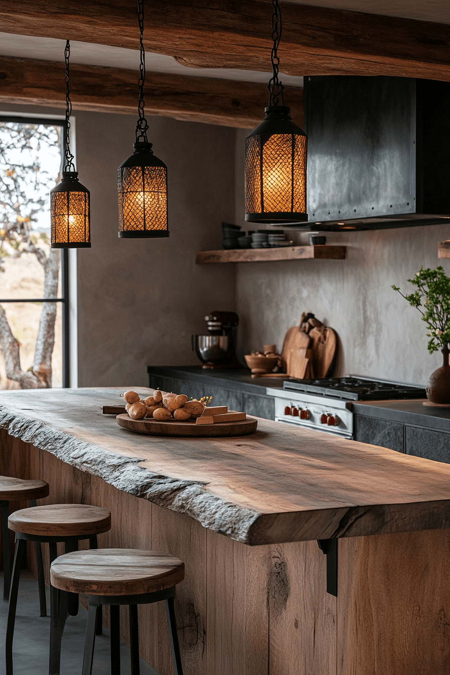 Wrought iron fixtures introduce bold texture and timeless strength into your kitchen. Durable materials add character and depth. Kitchen lighting ideas like this suit rustic or classic styles. The design feels grounded and sturdy. The space gains visual weight. Add strong character through lighting.