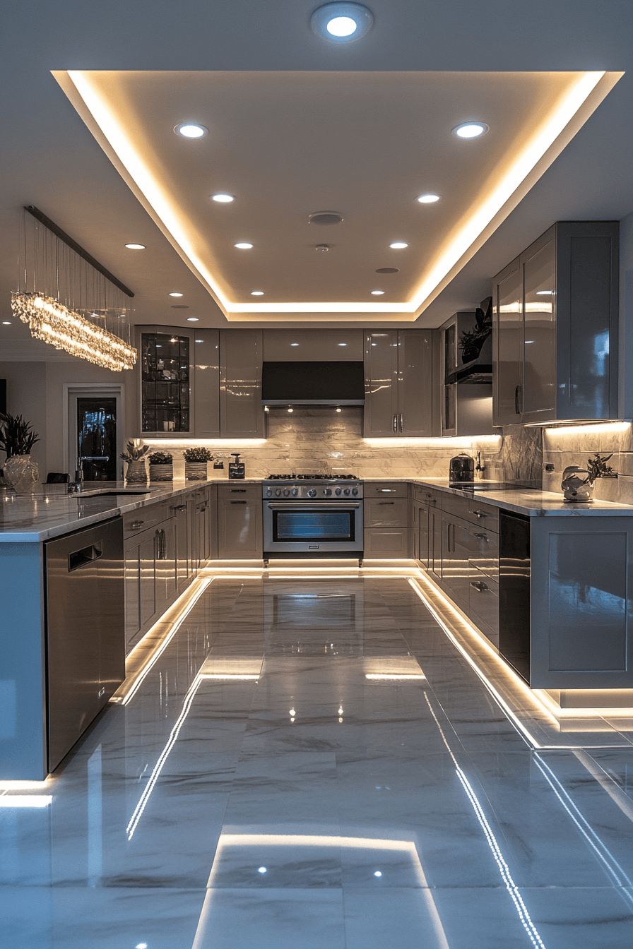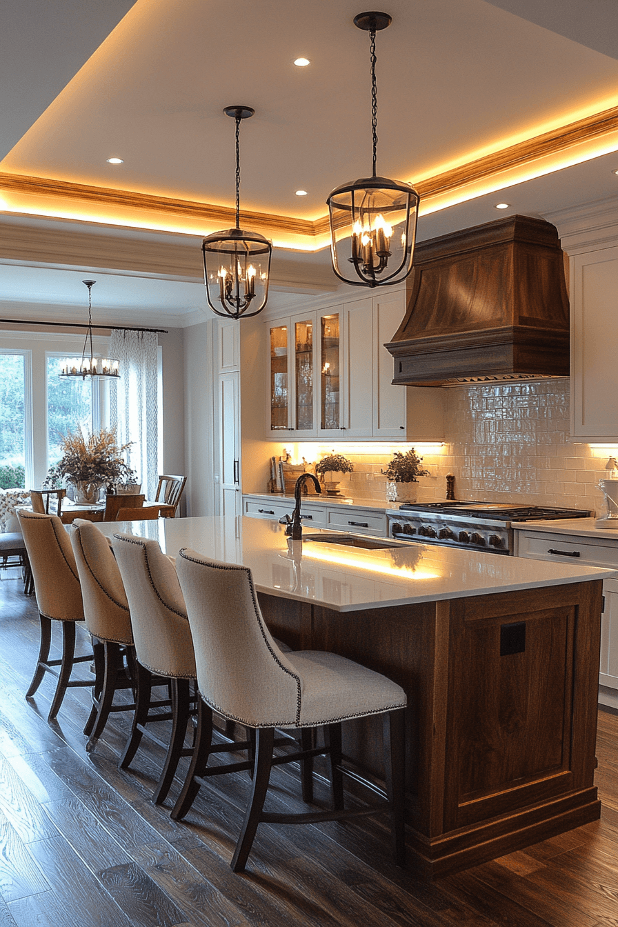 Hidden cove lighting introduces a soft, indirect glow that enhances the kitchen atmosphere. Light reflects across ceilings to create a calm effect. Kitchen lighting ideas like this make spaces feel larger and more refined. Subtle illumination adds elegance without harshness. The mood feels relaxed and polished. Add soft ambient lighting to your space.