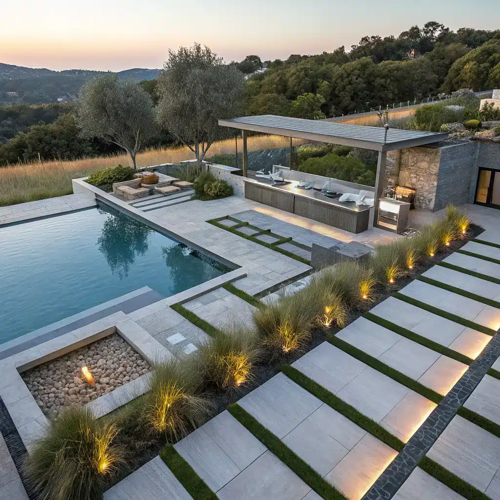 It’s all about clean lines, geometric shapes, and blending nature with smart hardscaping to create spaces that actually work for how I live.