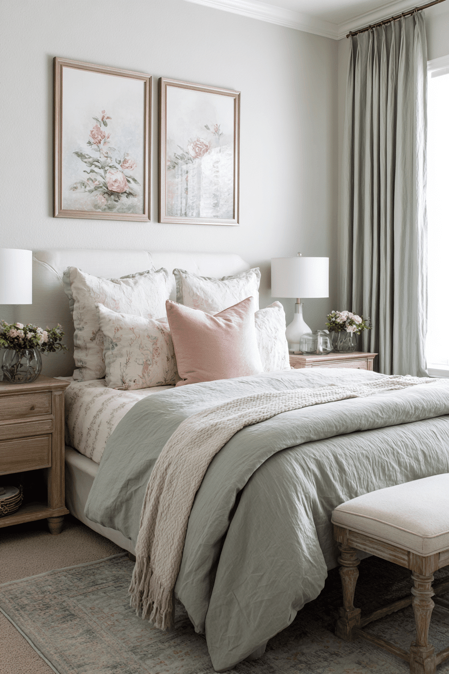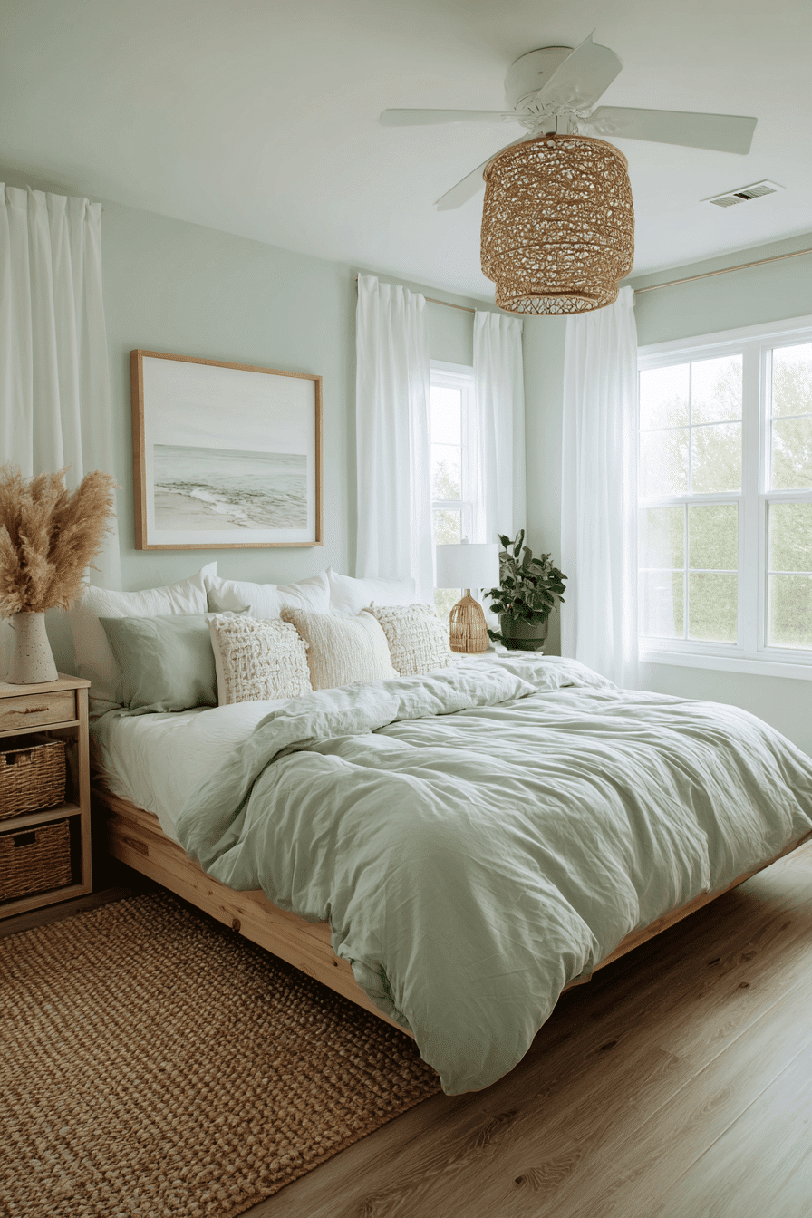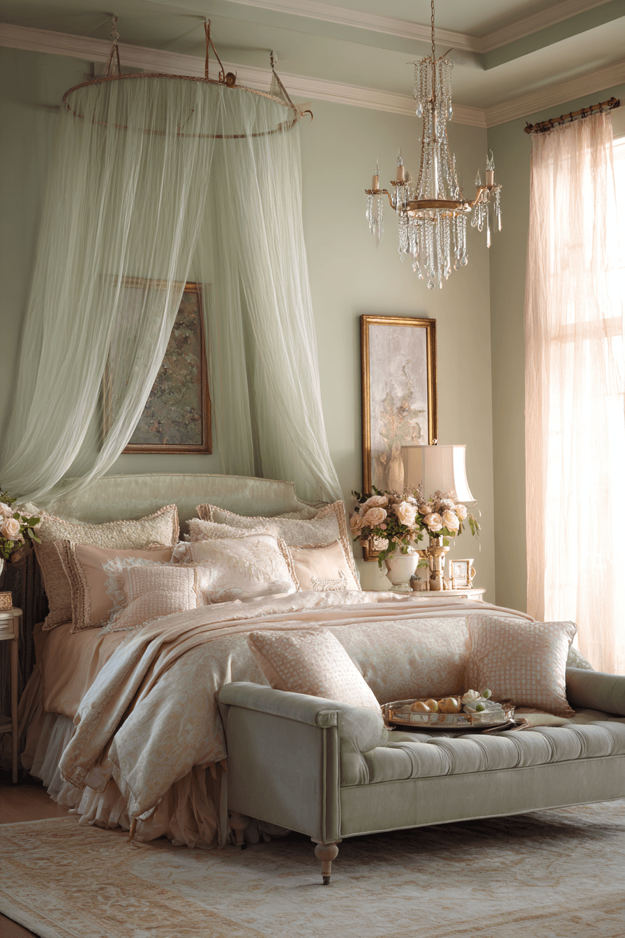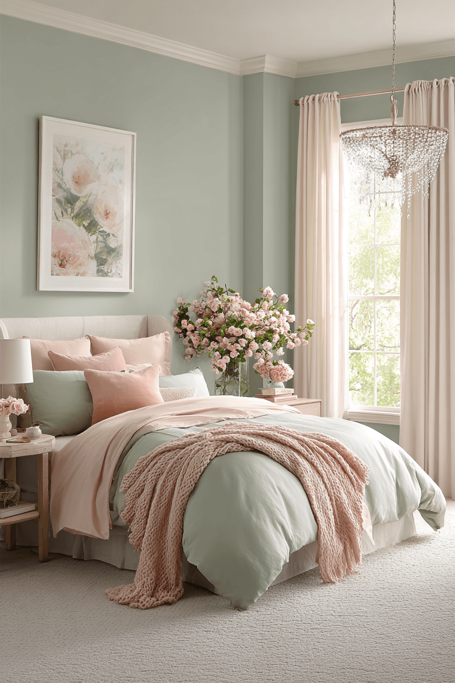 Dreamy styling creates a soft and romantic atmosphere in a light sage green bedroom that feels warm and inviting. Blush tones, sheer fabrics, and soft lighting enhance the mood. Light sage green bedroom palettes keep everything grounded and calm. The space feels cozy and uplifting. The design feels gentle and relaxing. Create your own dreamy bedroom escape.