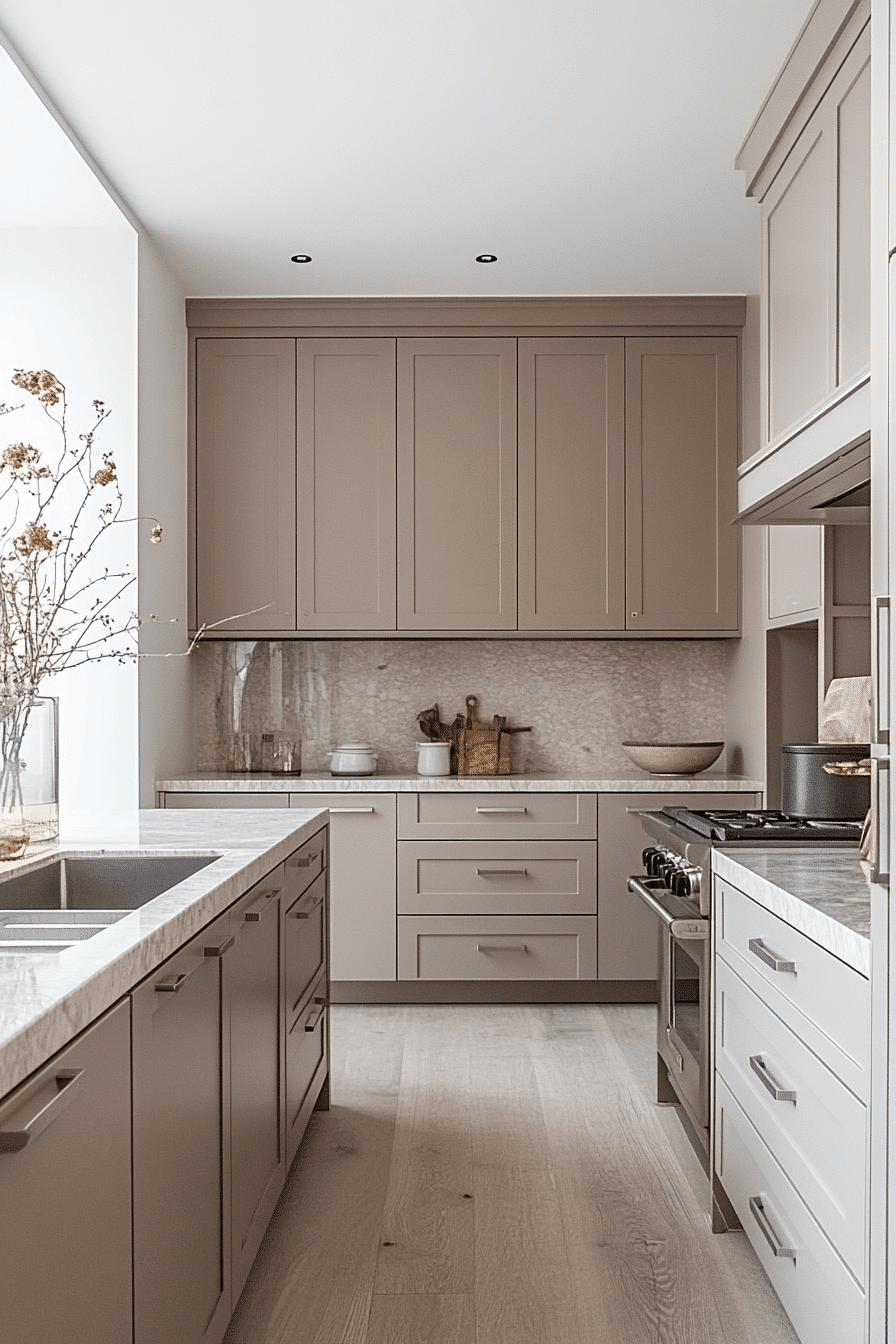 Light taupe kitchen cabinets offer the perfect balance between warmth and modern sophistication, creating spaces that feel both inviting and refined. This versatile neutral tone has become a favorite in contemporary kitchen design, bridging the gap between stark white and deeper beiges while maintaining a fresh, elevated aesthetic. Whether you’re drawn to minimalist Scandinavian styles, industrial-inspired spaces, or luxe modern kitchens, light taupe adapts beautifully across design approaches. These cabinets enhance natural light, complement a wide range of materials from marble to wood, and create a calming foundation that makes your kitchen feel both polished and livable. Explore these inspiring ideas to discover how light taupe can transform your kitchen into a harmonious, timeless space.