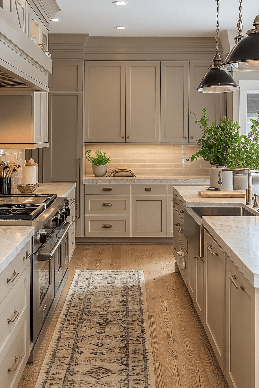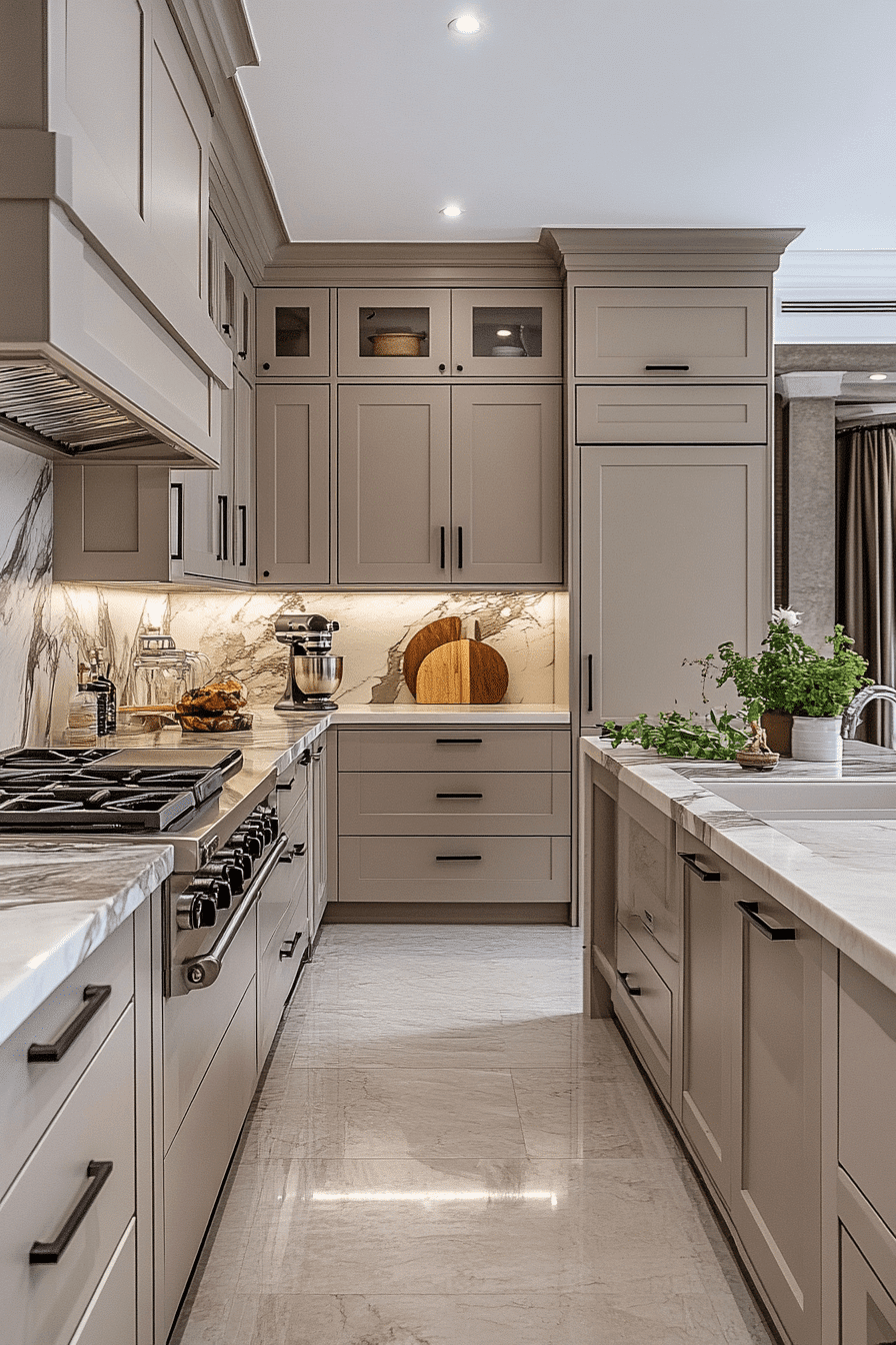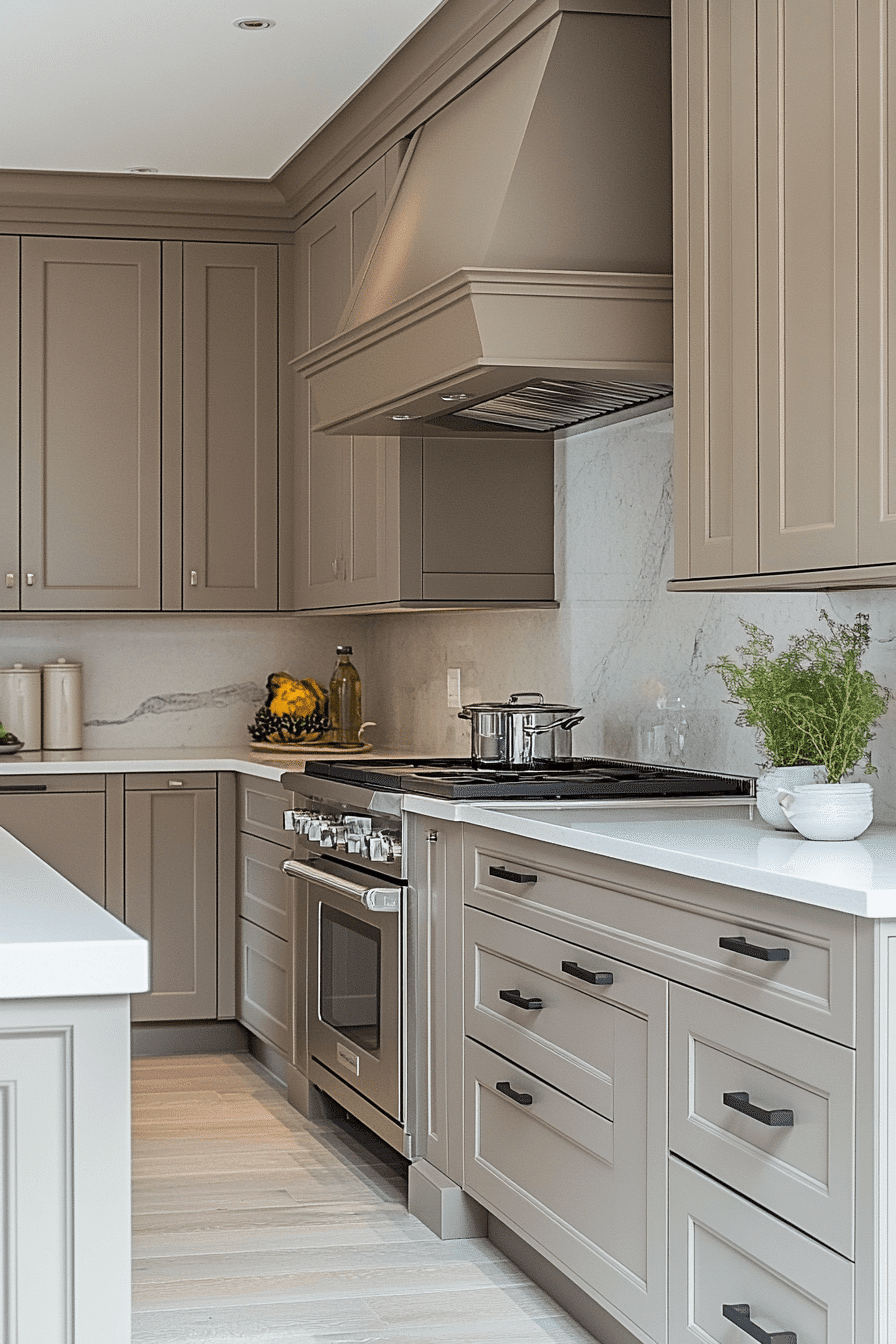 Soft visual flow appears when light taupe kitchen cabinets create a smooth and calming backdrop. This tone reduces harsh contrast while adding gentle depth. Light taupe kitchen cabinets pair nicely with subtle finishes. The design feels polished and cohesive. The space feels relaxed and elegant. Create a flowing kitchen design.