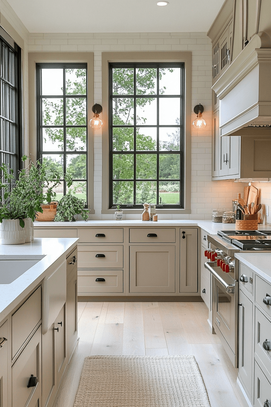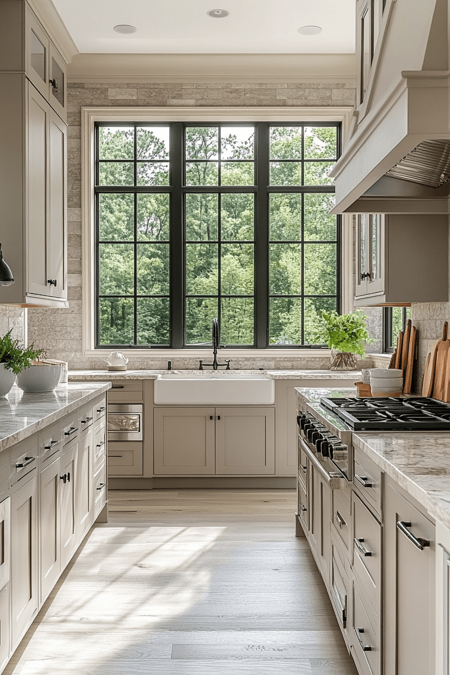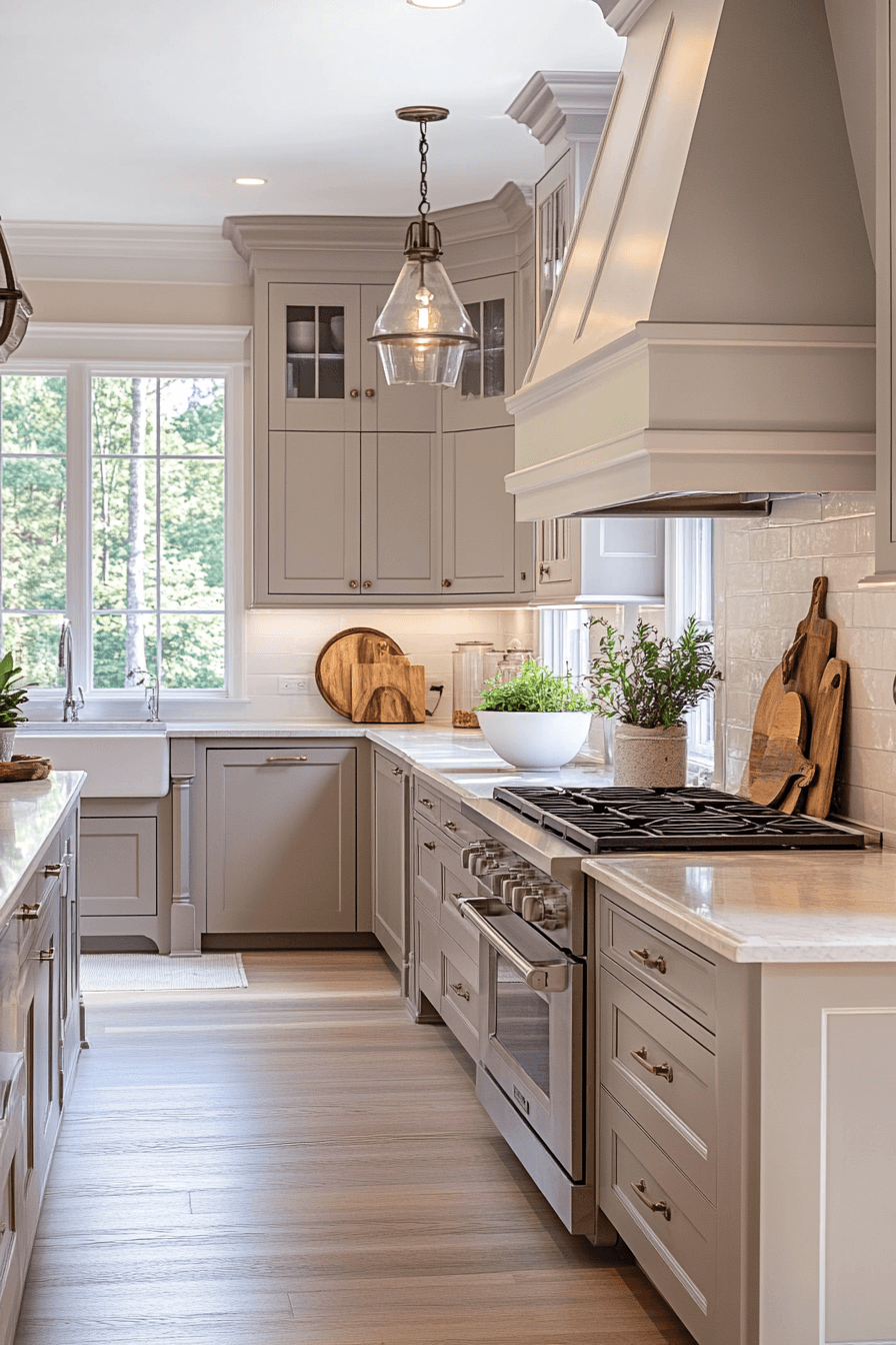Soft brightness feels more natural when light taupe kitchen cabinets replace stark white tones. This shade keeps the space light while adding warmth. Light taupe kitchen cabinets prevent the design from feeling flat. The space feels fresh and inviting. The overall look stays easy to enjoy. Brighten your kitchen naturally.