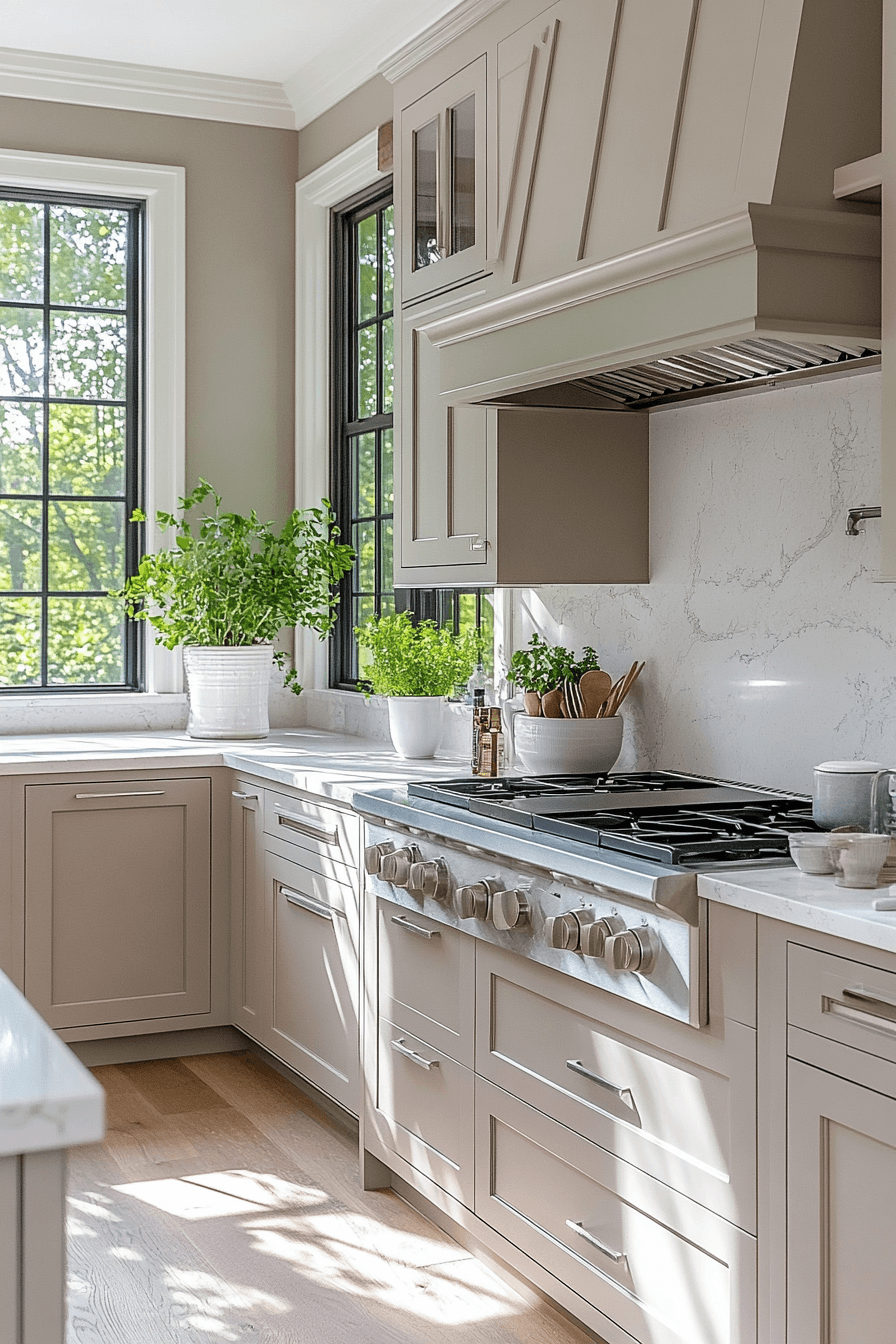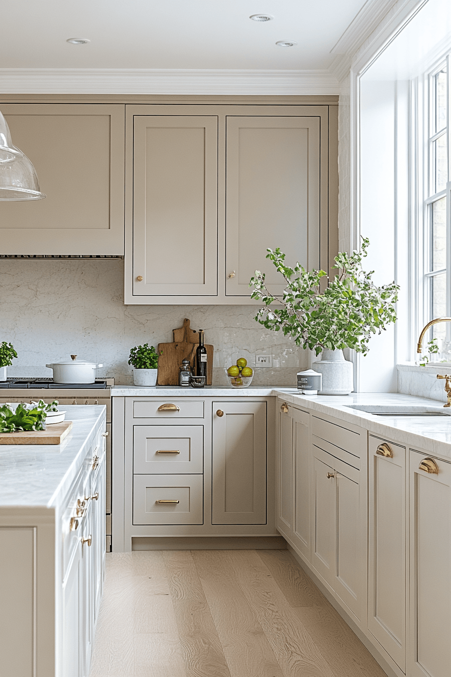 Refined simplicity shines through when light taupe kitchen cabinets support a clean and elegant layout. This neutral highlights textures and subtle details. Light taupe kitchen cabinets maintain balance across the entire space. The design feels composed without being overly styled. The result is timeless and polished. Simplify your kitchen with elegance.