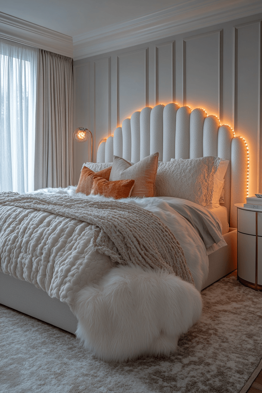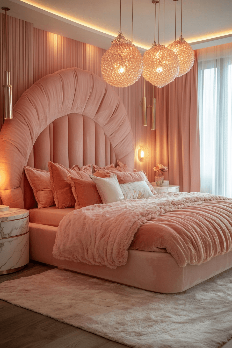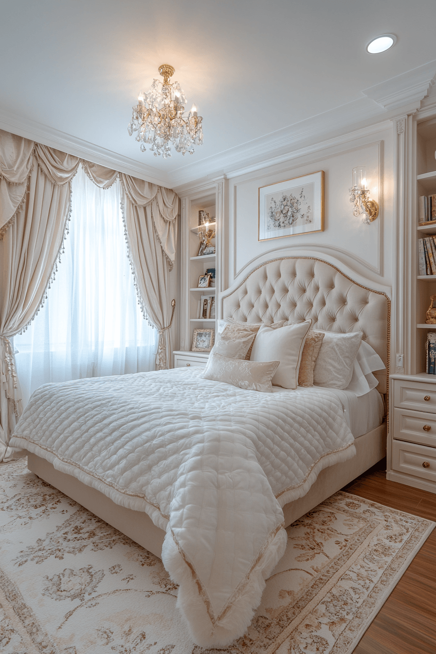 A plush-filled luxury kids bedroom can feel like stepping into the coziest cloud imaginable. Oversized padded furniture, soft rugs, and upholstered headboards wrap the room in comfort from every angle. Canopy beds and flowing fabrics add a dramatic sense of elegance that still feels warm and inviting. Crystal-style lighting and embroidered details bring in that beautiful designer finish. Every layer adds softness, richness, and a truly irresistible charm. Discover more cozy-chic inspiration and build the dreamiest retreat possible.