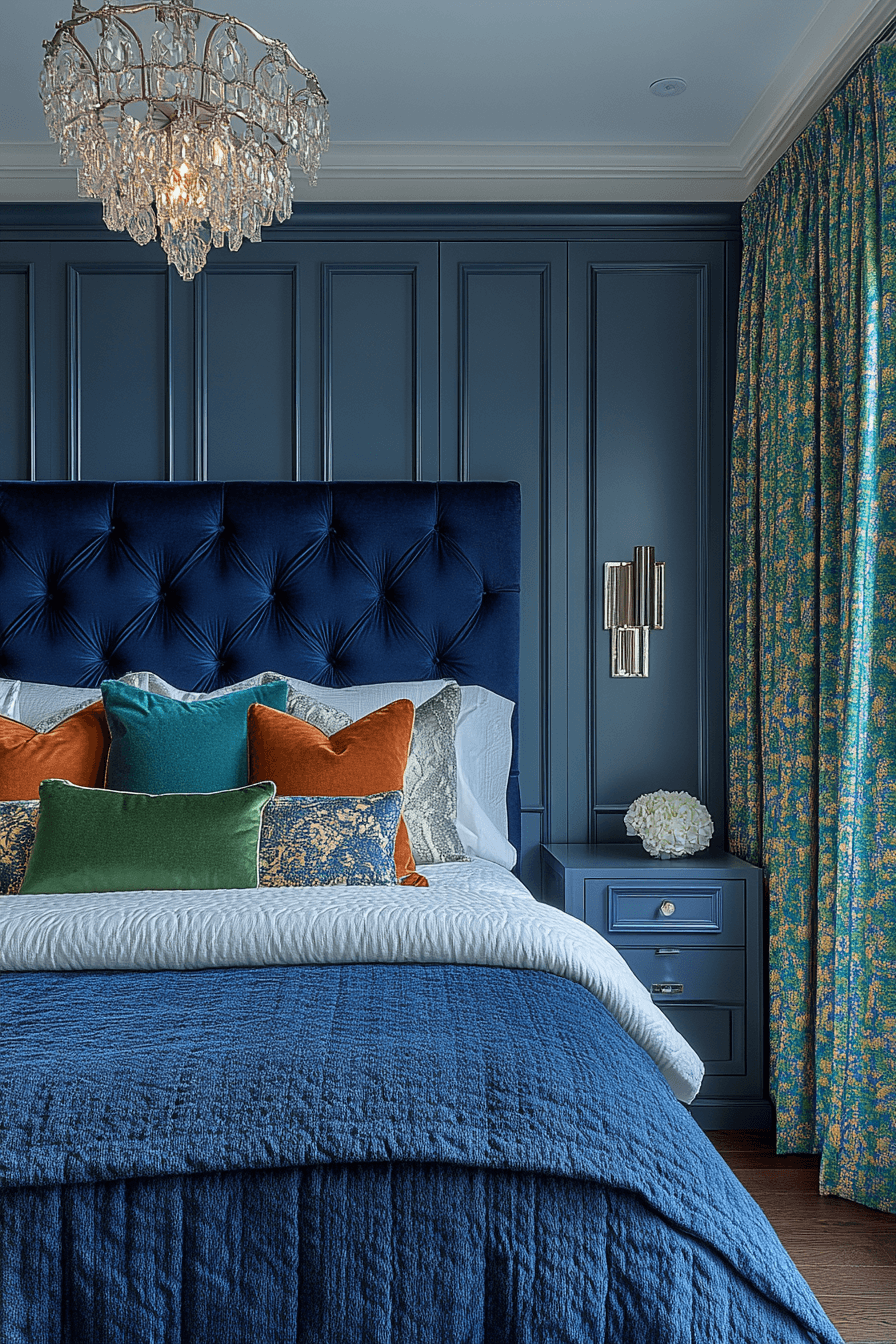 A velvet-rich luxury kids bedroom creates an atmosphere that feels warm, elevated, and deeply inviting. Upholstered walls, soft drapery, and layered bedding build a cocoon-like comfort that feels instantly luxurious. Deep blue hues paired with metallic accents bring in that quiet, sophisticated mood. The mix of textures adds depth and softness without making the room feel too busy. It is a perfect setting for restful sleep and stylish lounging alike. Browse more plush bedroom inspiration and bring this cozy look to life.