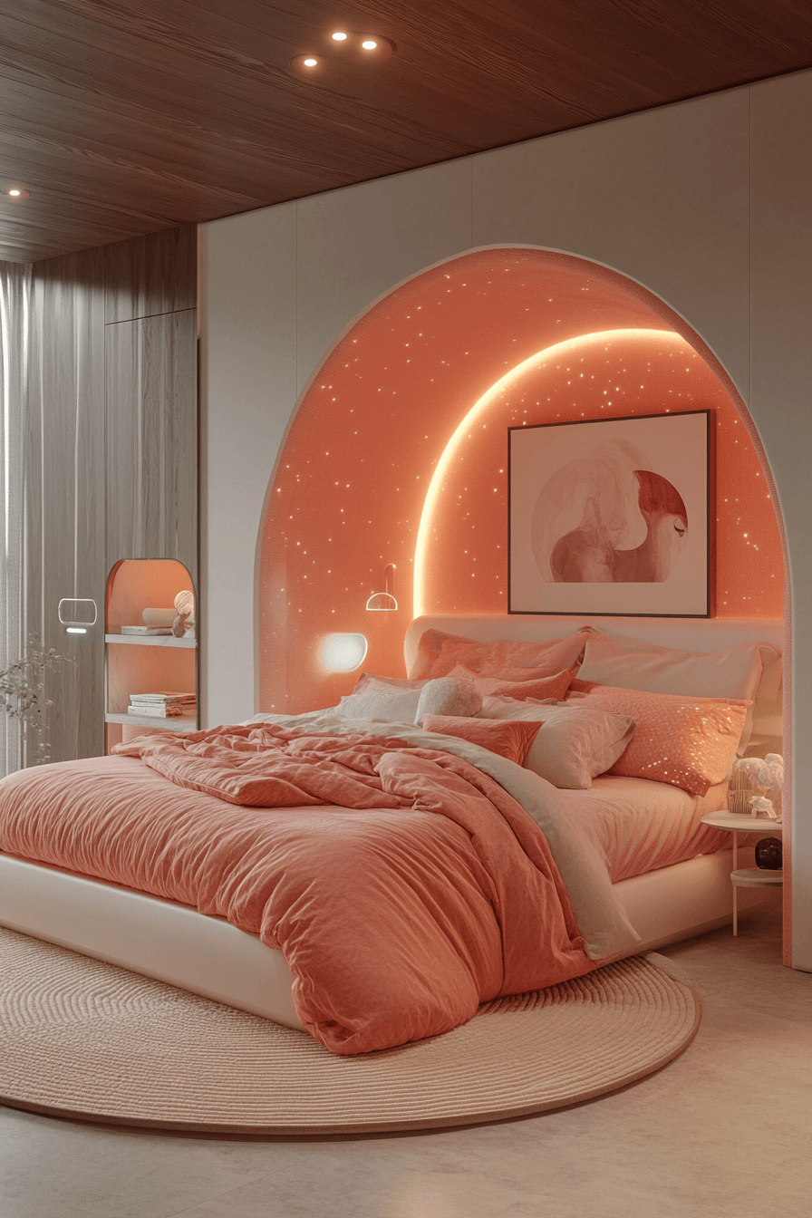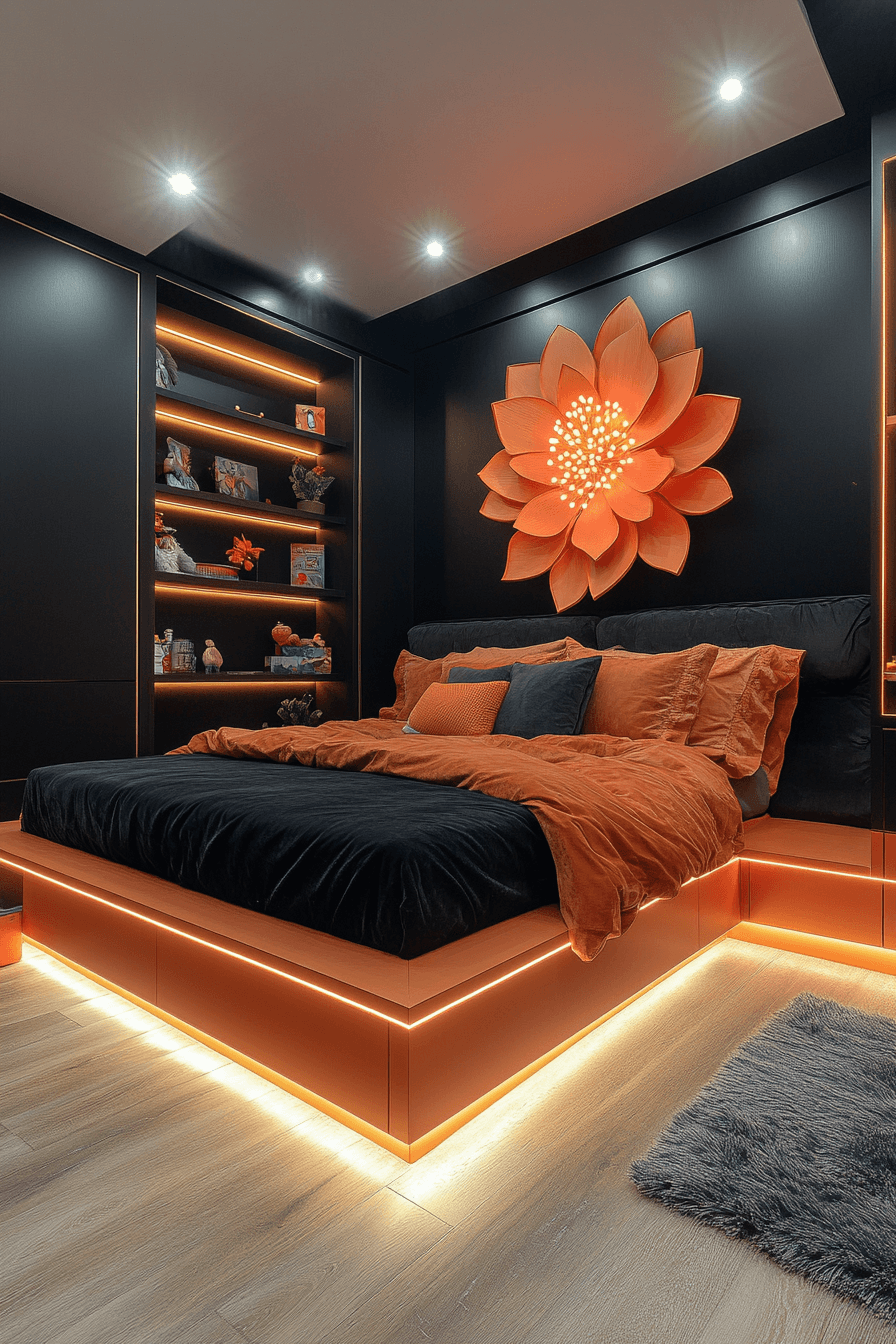 This neon-inspired luxury kids bedroom brings playful energy and modern edge into one unforgettable design. LED strips and glowing accents create a vibrant atmosphere full of personality and fun. Dark curtains and moodier finishes balance the brightness for a more polished look. Sleek furniture and mirrored elements tie everything together with a cool, contemporary feel. The space feels lively, creative, and undeniably stylish. Find more bold bedroom inspiration and light up your next design idea.