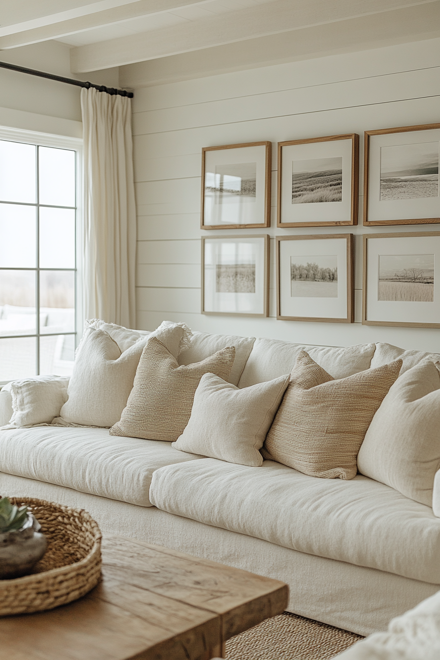 A gallery wall is a fun way to showcase family memories in your home. This modern farmhouse interior features a mix of frames that add character and warmth. By displaying cherished moments, you create a personal touch that makes your space feel inviting.