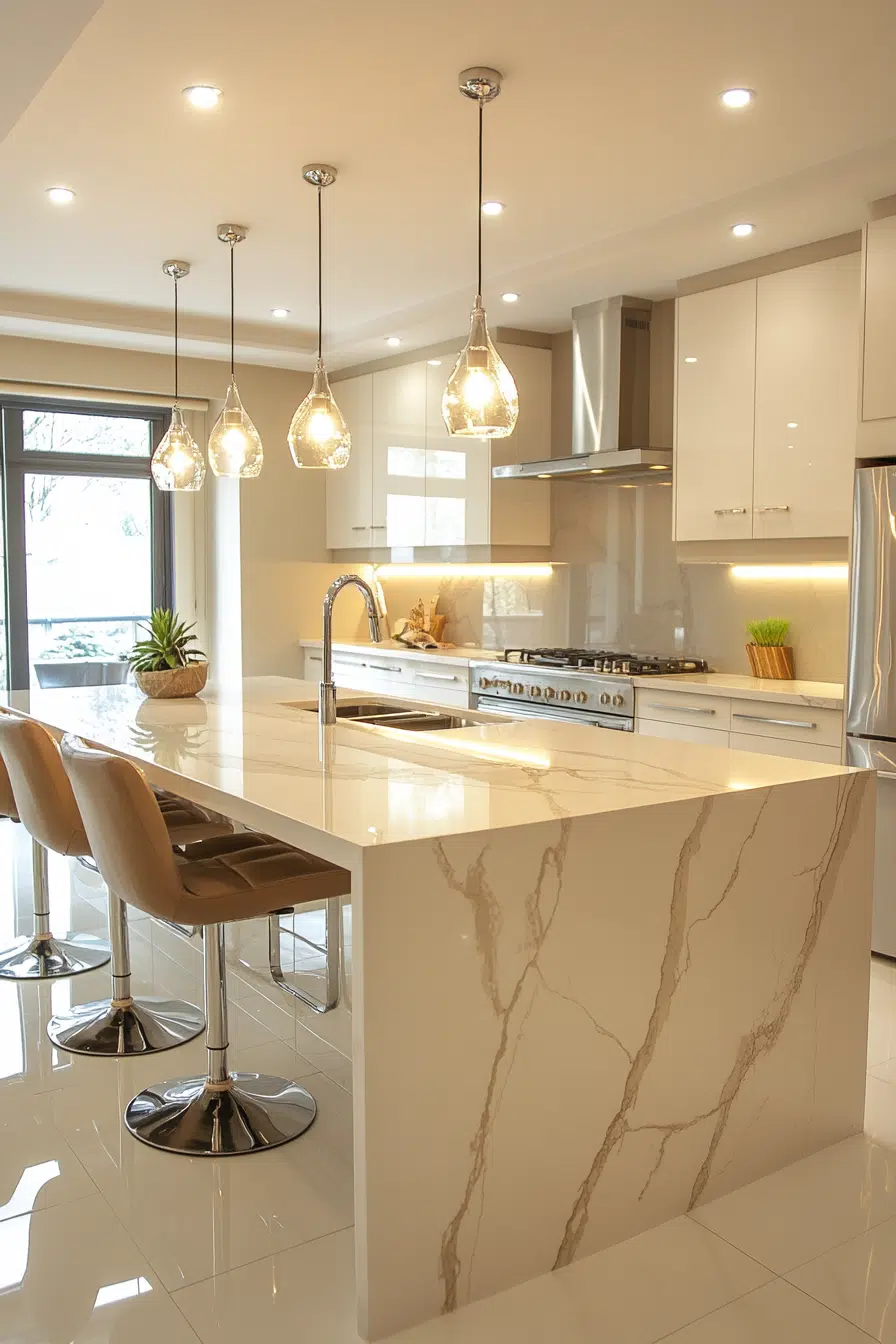 1. Sleek Marble Kitchens