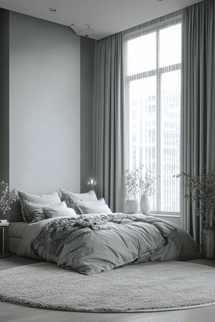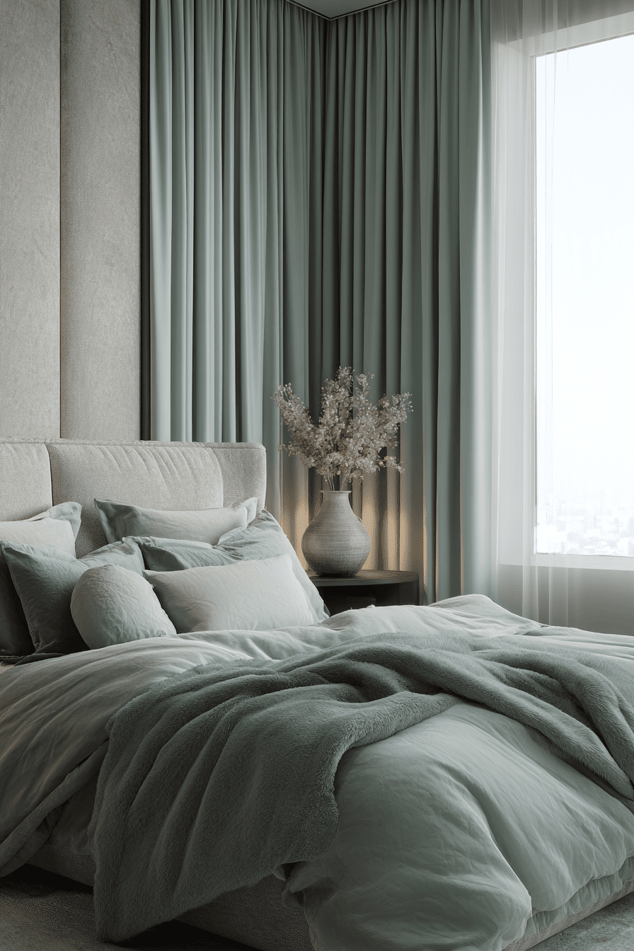 Evenly distributed tones can make the room feel grounded and harmonious at the same time. A sage green and grey bedroom becomes more cohesive when curtains, bedding, walls, and accents all share the palette in a balanced way. Grey adds order, while sage keeps the room natural and soft. Texture adds depth without interrupting the flow. The finished result feels calm, measured, and beautifully complete. Use this balanced approach and create a room that feels fully in sync.