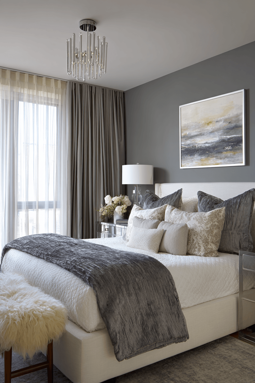Well-chosen materials can make this palette feel much more luxurious than it first appears. A sage green and grey bedroom feels elevated when crisp bedding, quality upholstery, curated lighting, and sleek furniture work together within the same soft tones. Grey lends a quiet sophistication, while sage keeps the design warm and approachable. The look feels subtle but undeniably polished. It is understated luxury with a restful edge. Refine your bedroom with this elegant direction and enjoy the difference.