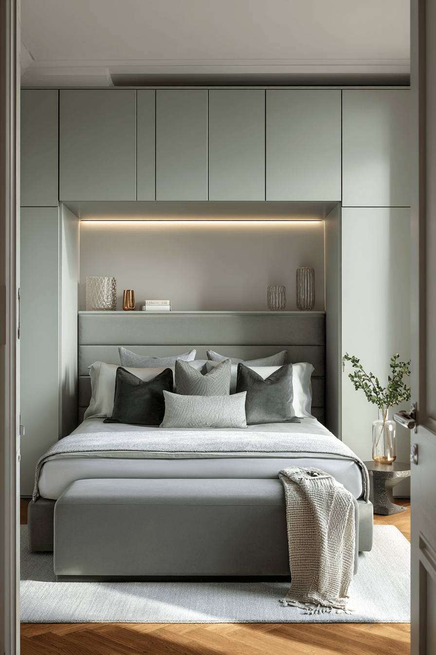 Simple decorating choices can make these tones feel even more timeless. A sage green and grey bedroom shines when clutter is kept to a minimum and the palette is allowed to do the visual work. Sage introduces warmth and softness, while grey keeps the room feeling modern and grounded. Sleek storage, clean bedding, and open surfaces help everything stay light and composed. The room feels easy to live in and easy to love. Try this minimalist direction and enjoy the quiet beauty.