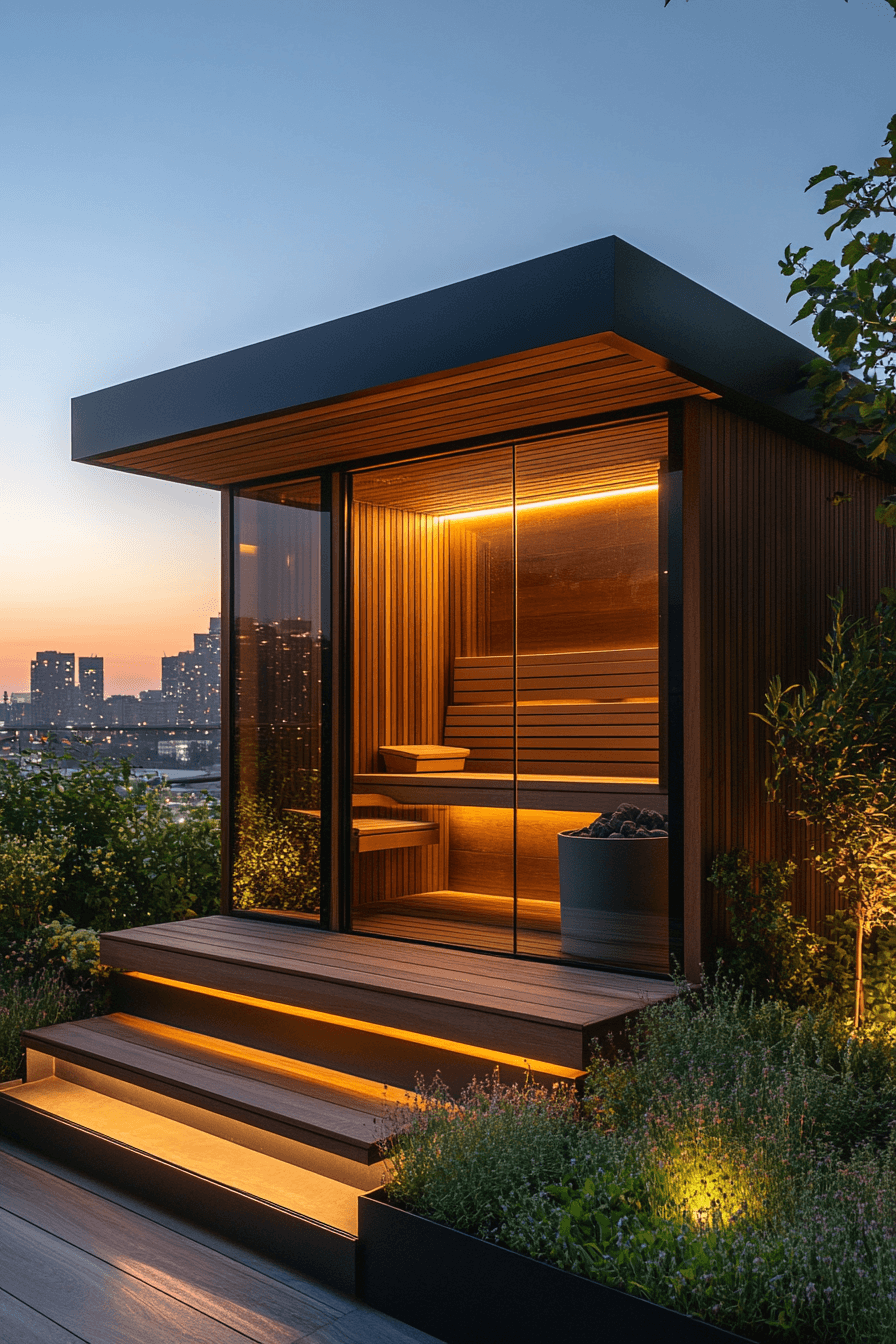 Take relaxation outdoors with sauna ideas designed for rooftop settings. Open skies and scenic views create a unique escape. Natural materials blend beautifully with the surroundings. Glass panels enhance light and openness. The experience feels refreshing and luxurious. Elevate your lifestyle with these rooftop sauna ideas.