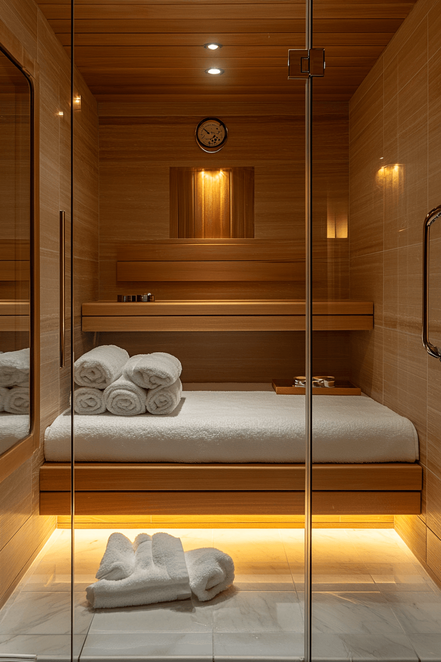 Create a refined retreat with sauna ideas inspired by boutique design. Rich textures and elegant finishes elevate the look. Personalized details enhance comfort and style. The space feels intimate and exclusive. Every element contributes to a luxurious atmosphere. Design your perfect escape with these sauna ideas.