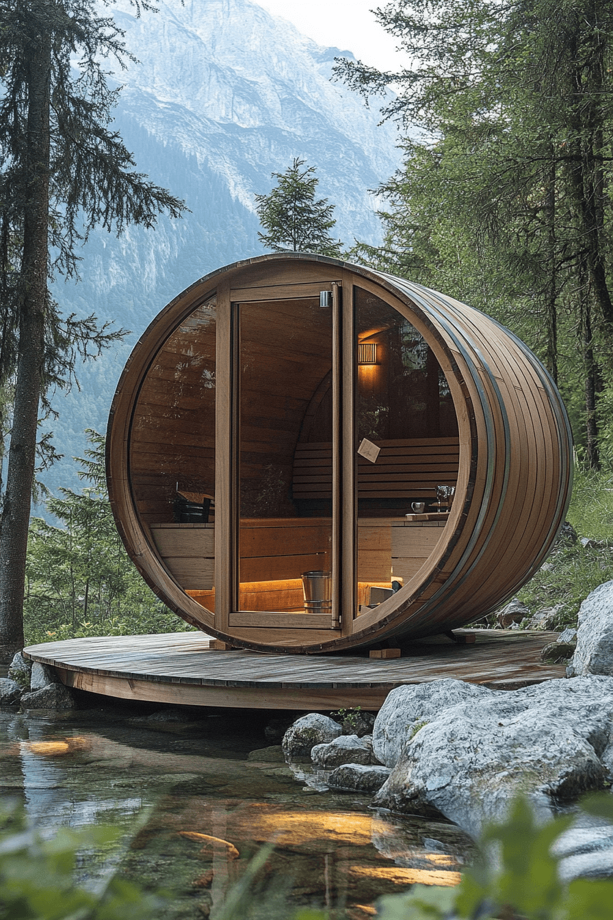 Add character to your outdoor space with sauna ideas that feature barrel-style designs. The curved shape improves heat circulation. Durable materials provide lasting performance. Compact size fits smaller areas easily. The design feels cozy and inviting. Enhance your backyard with these sauna ideas.