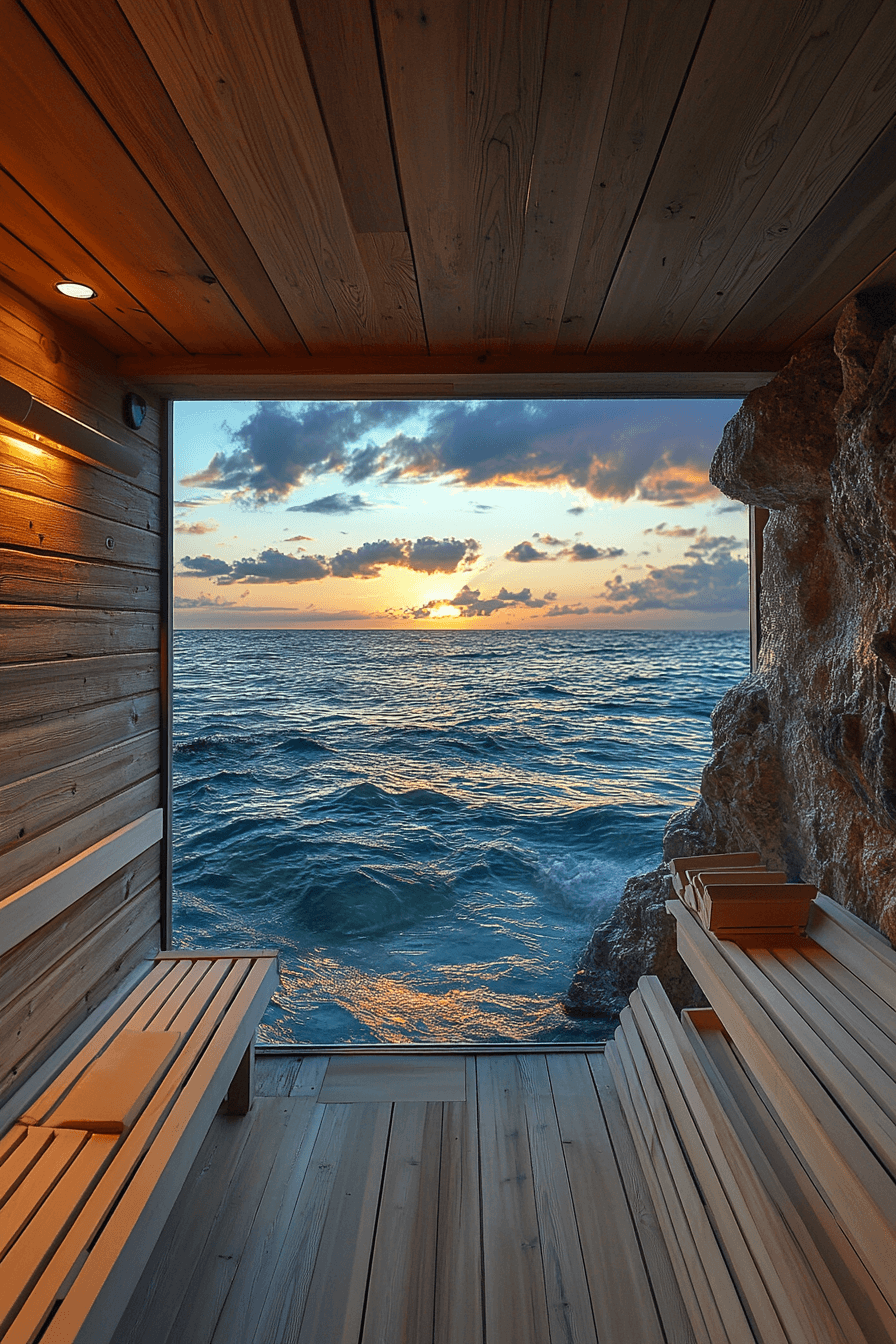 Create a tranquil escape with sauna ideas positioned near water. Ocean or lake views enhance the calming atmosphere. Open designs blend indoor and outdoor spaces. Durable materials ensure longevity. The space feels peaceful and refreshing. Relax by the water with these sauna ideas.