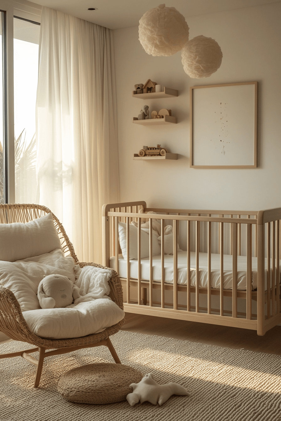 This nursery feels like a gentle embrace of love and calm. Soft fabrics, neutral colors, and warm wood tones wrap the space in comfort. Every corner glows with nurturing energy. The design inspires peace for both baby and parent alike.