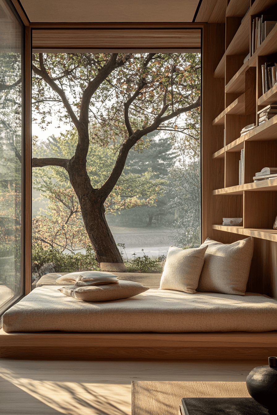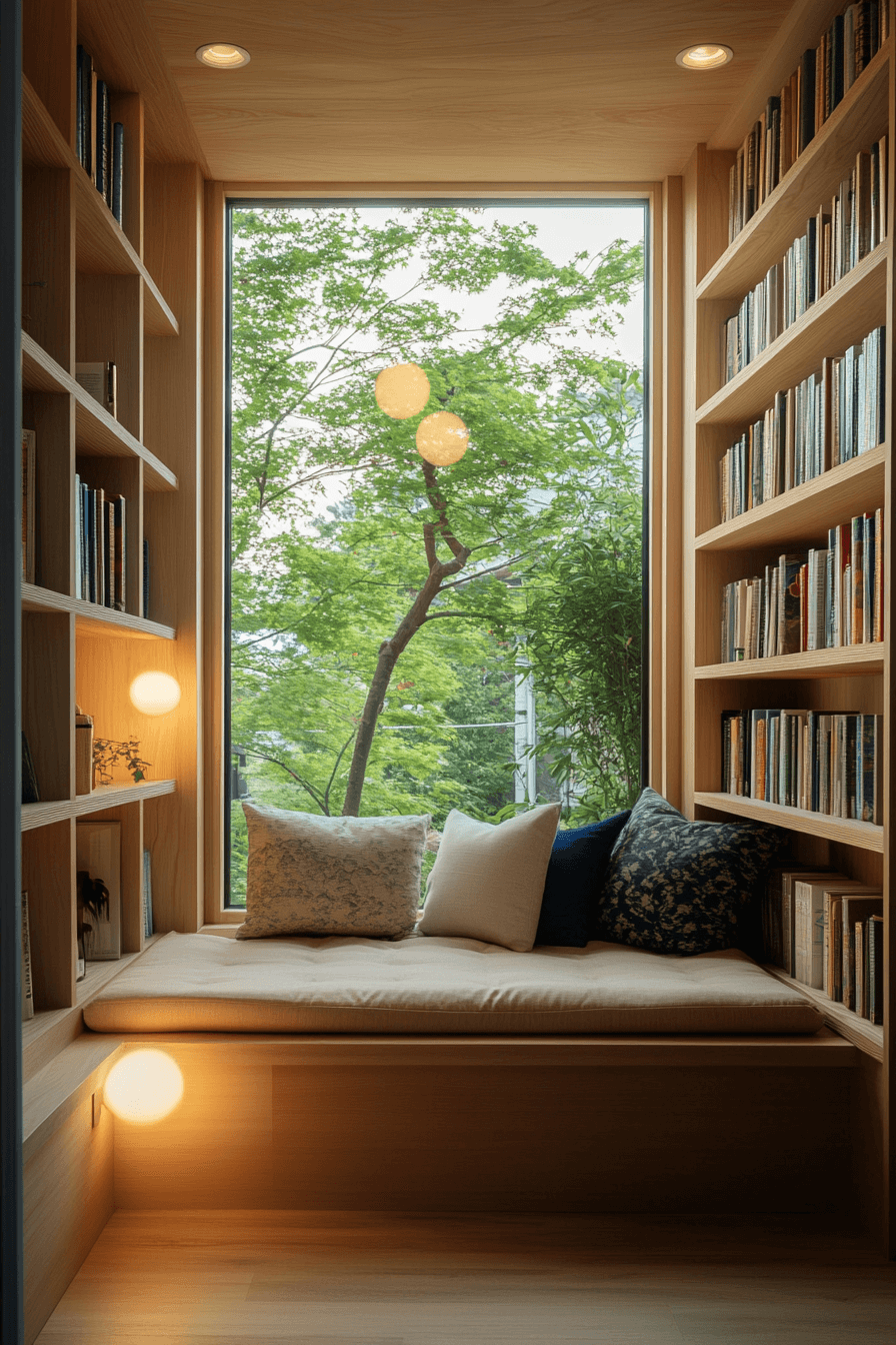 This library blends Nordic warmth with Japanese calm, creating a reader’s paradise. Light wood shelves, soft textiles, and clean lines evoke instant serenity. Every corner invites reflection and imagination. The minimal layout makes it feel expansive and peaceful.