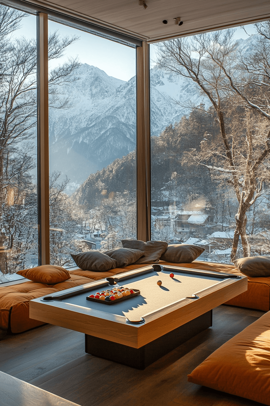 This game room brings together fun and mindfulness. Smooth textures and neutral tones create a relaxed, harmonious vibe. Comfortable seating makes every moment feel effortless. The minimalist design keeps the energy light and focused.