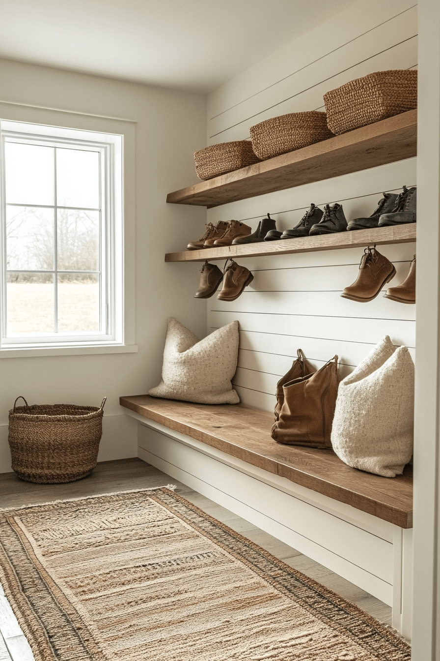 A mudroom designed with calm order transforms the everyday routine. Smooth benches, natural tones, and soft lighting invite ease. It’s both functional and soul-soothing.