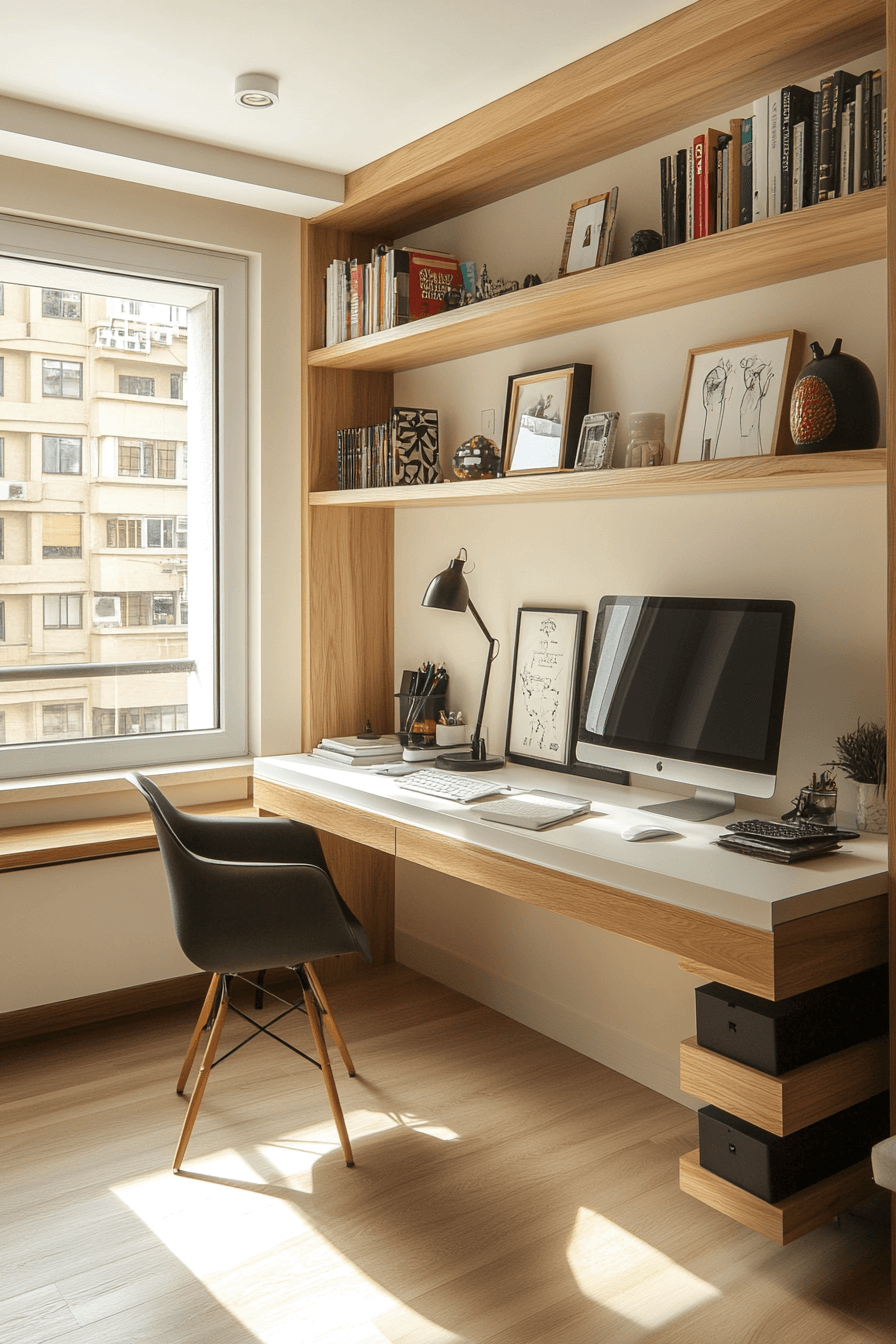 Clarity meets creativity in this home office designed for focus and calm. Sleek lines and natural textures make work feel lighter and more inspired. Hidden storage keeps the energy clear and open. Soft lighting enhances your mood, helping ideas flow with ease.